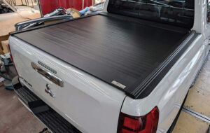 トライトン用。新型トライトンGLS用トノカバー電動式。スムーズな開閉としっかりとしたロック機能付き。トライトン専用設計だが荷台の取り付け状態に誤差があるため、現車に合わせて取り付けステーの加工が必要。374,000円(税込)