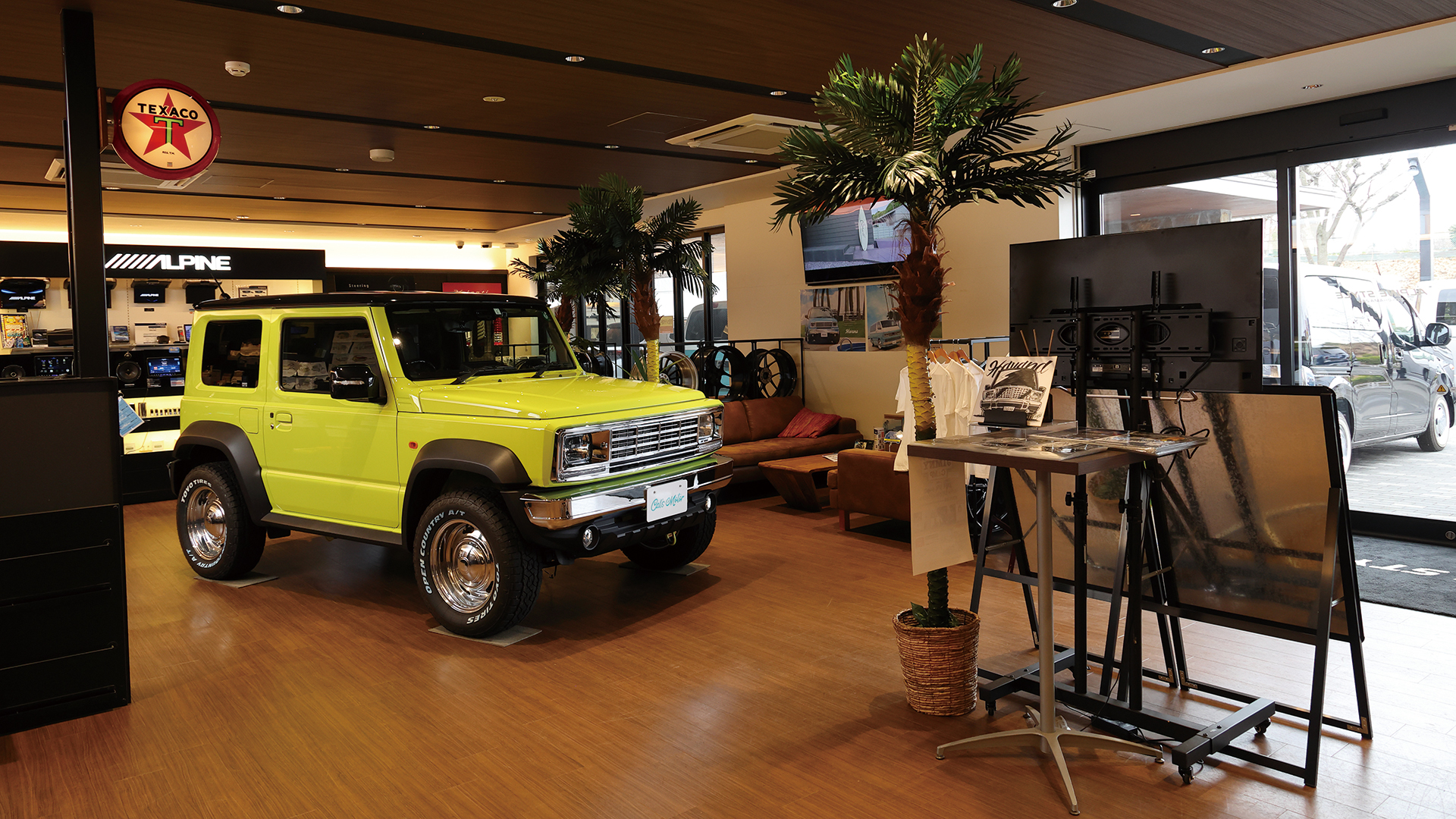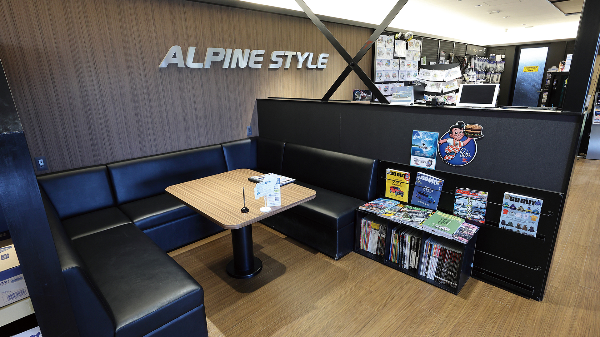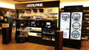 国道246号線沿いに店を構えるアルパインスタイル横浜246。カーナビやオーディオのほか配線などのパーツも揃っている。またアライメントテスタ—も完備しており足回りの交換にも対応する。