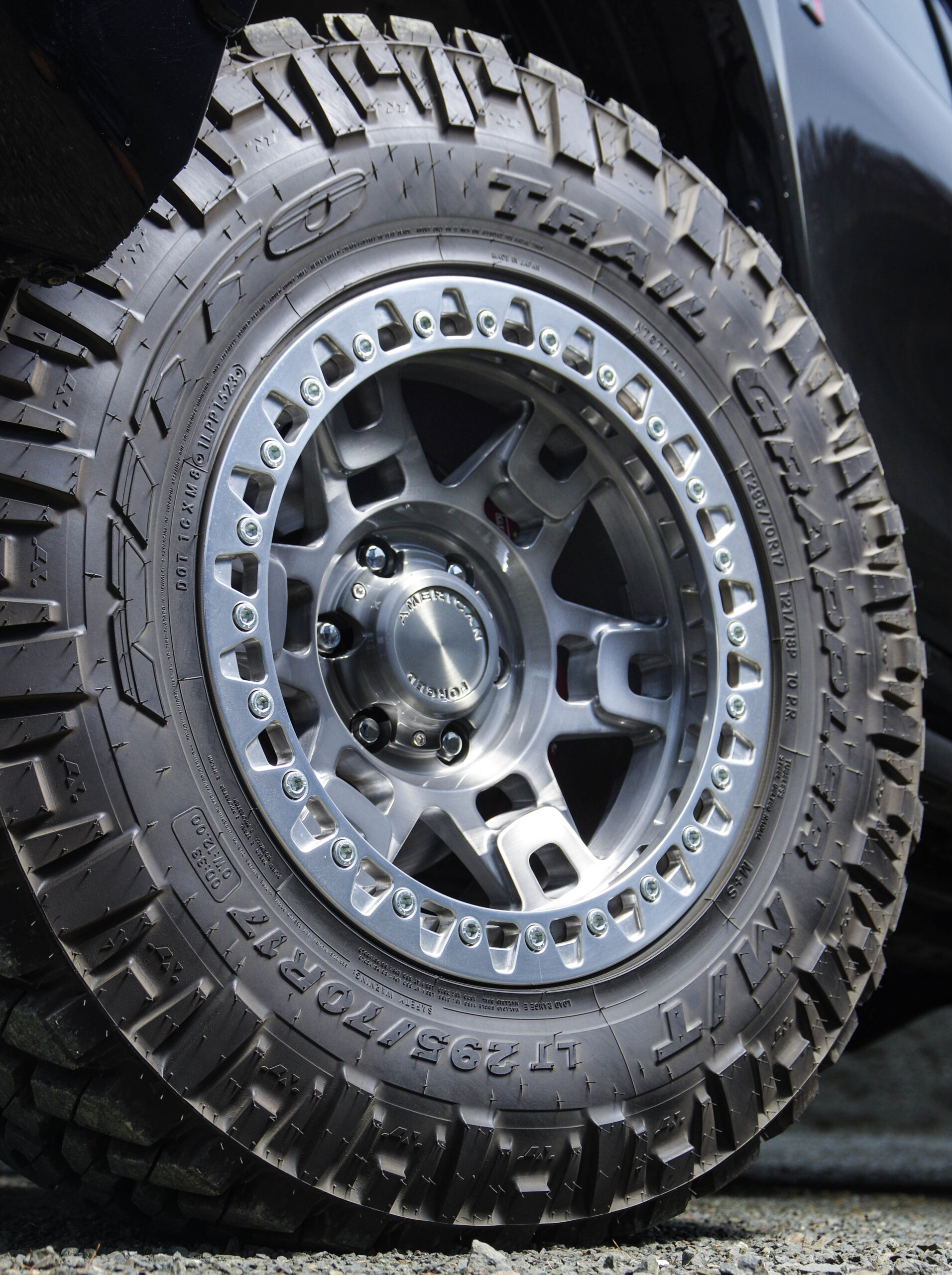 ■価格:¥121,000~(税込)トラックやSUVにフィットするよう、オフロードらしい重厚感を演出。スポークは2段階で立ち上がる独自デザインを採用し、力強さを強調。ビード付近には泥をスムーズに排出する専用ポートを配置。ビードロックリングの固定部にも高耐久素材を使用し、過酷な環境でも確かな強度を発揮する。