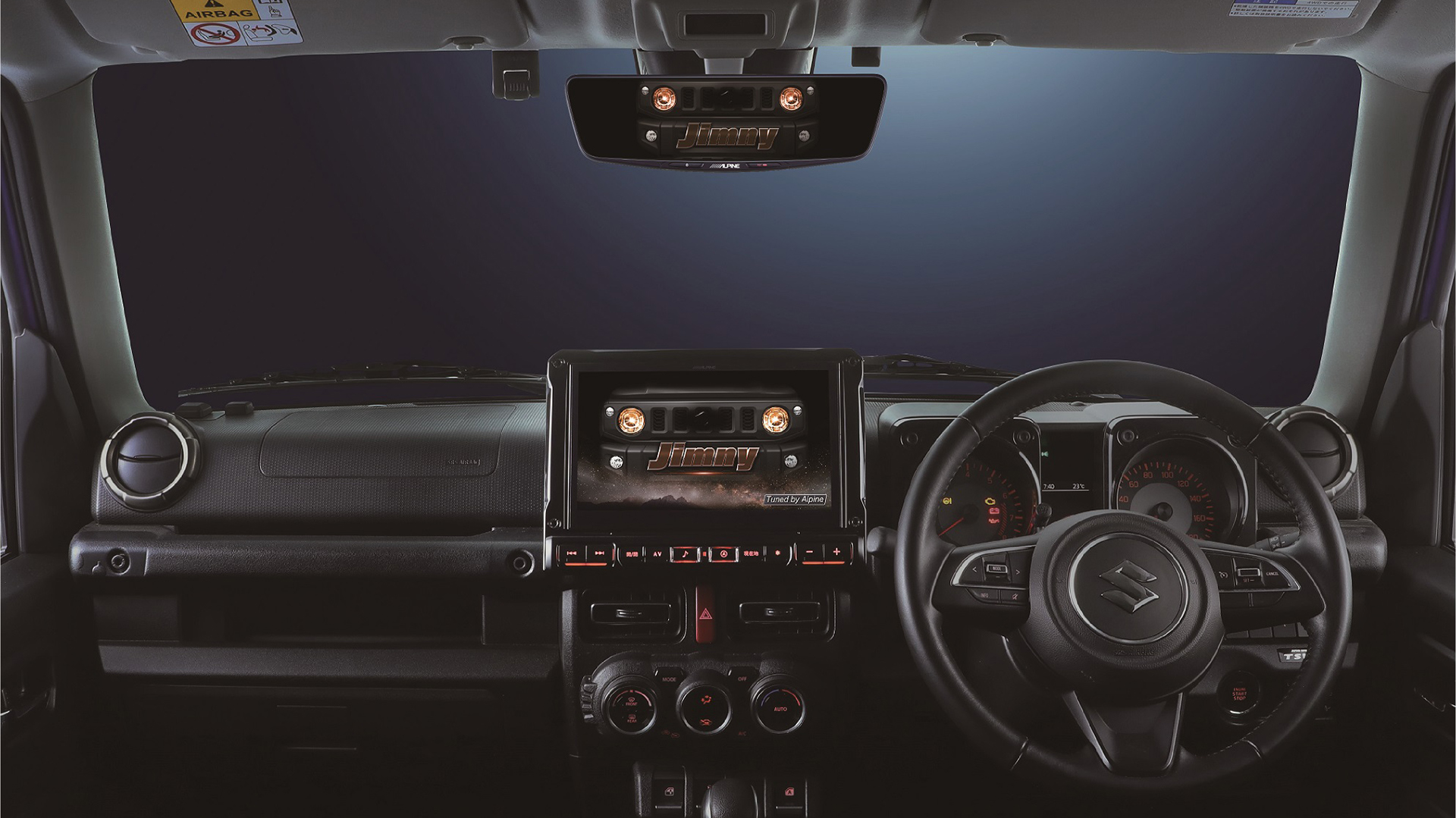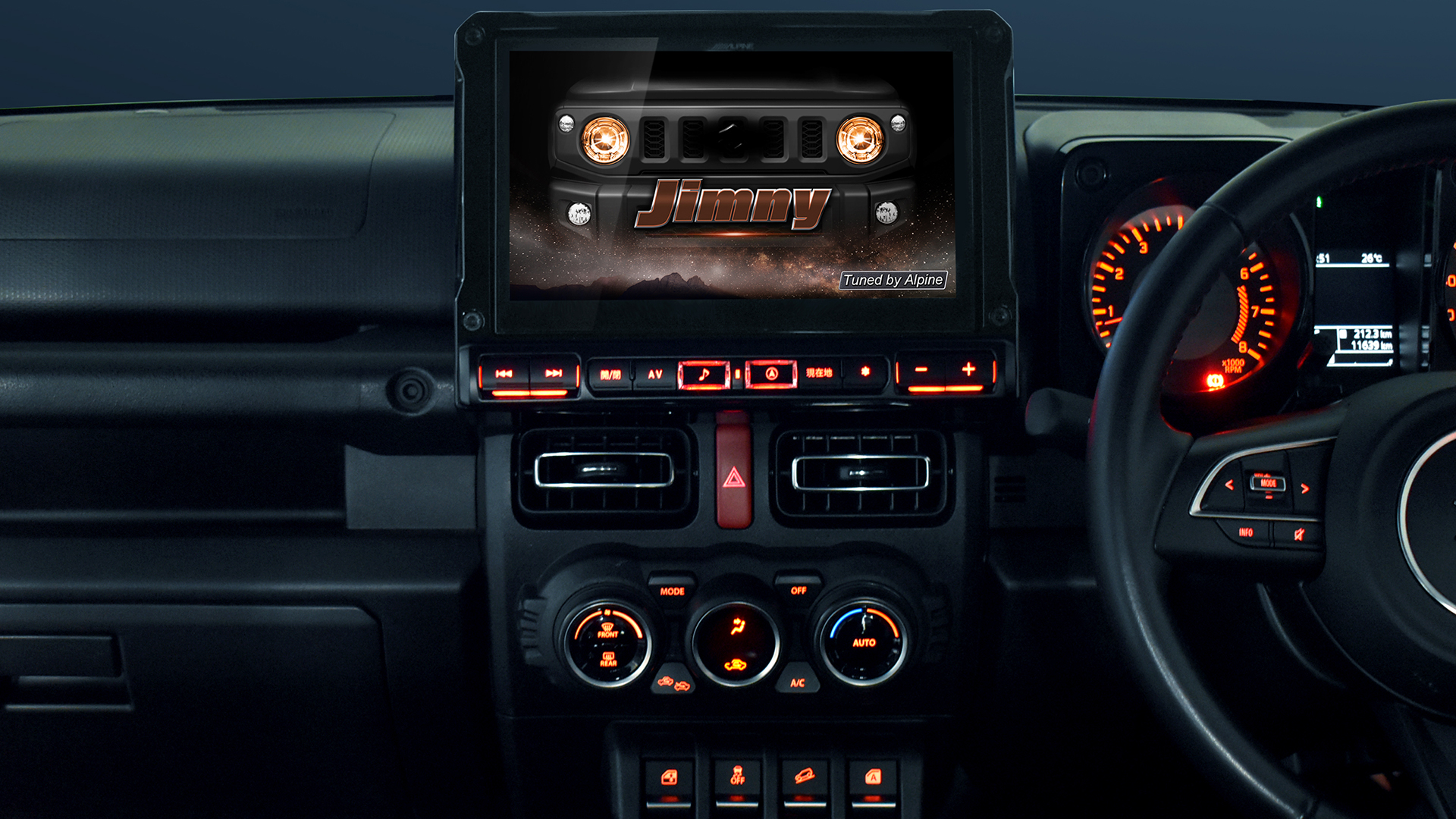 アルパインのジムニーへの徹底したこだわりが感じられるのがカーナビゲーション。「ジムニー専用」と名乗るだけあり専用設計のパネルは本物のボルトを使用するなどラギッドなデザインで、コクピットとの一体感も抜群。またナビはオープニング画面にジムニー/ジムニーシエラが選べるほか、悪路走行が楽しくなる傾斜計の画面にもジムニー/ジムニーシエラを表示することができる。ジムニーノマド用のナビにもこうしたイラストが採用されることが予想されている。「ジムニーならアルパイン」。それはジムニーノマドユーザーにも引き継がれていく伝統となりそうだ。