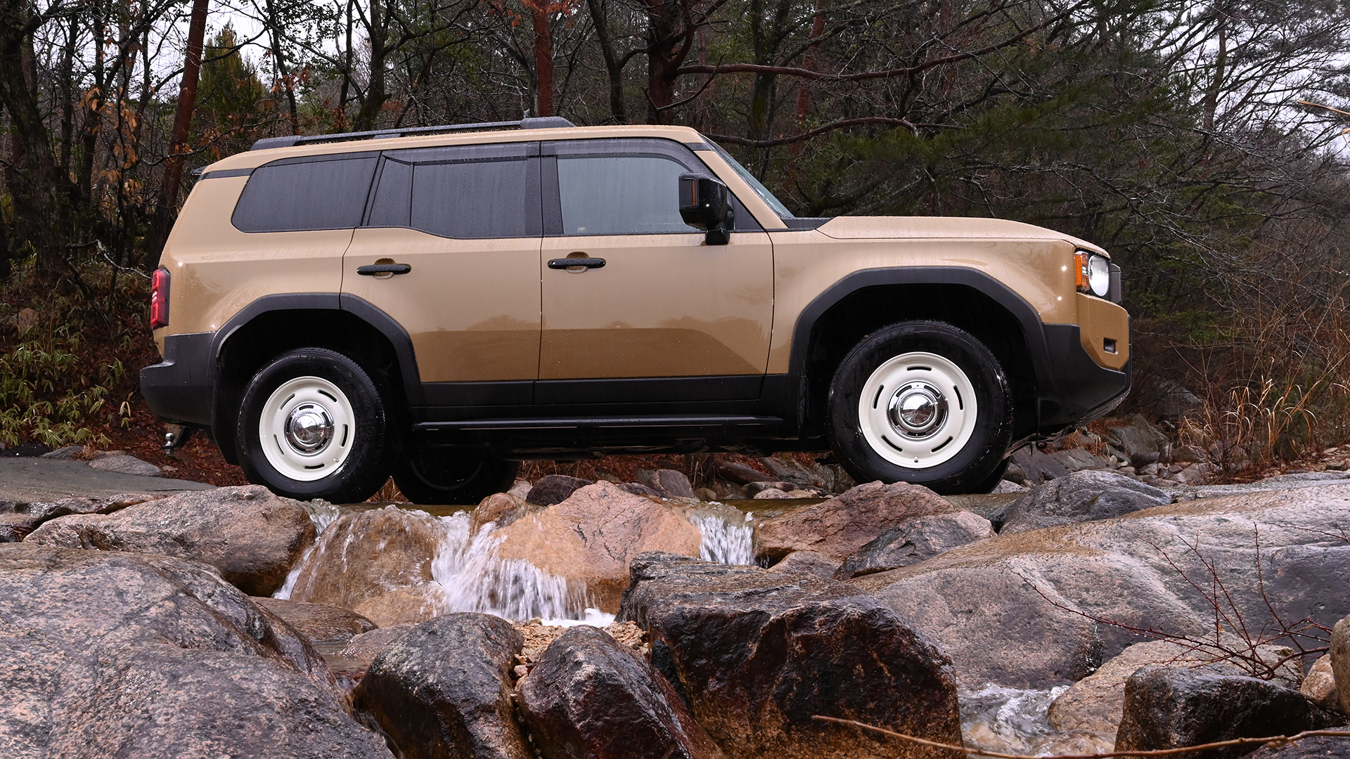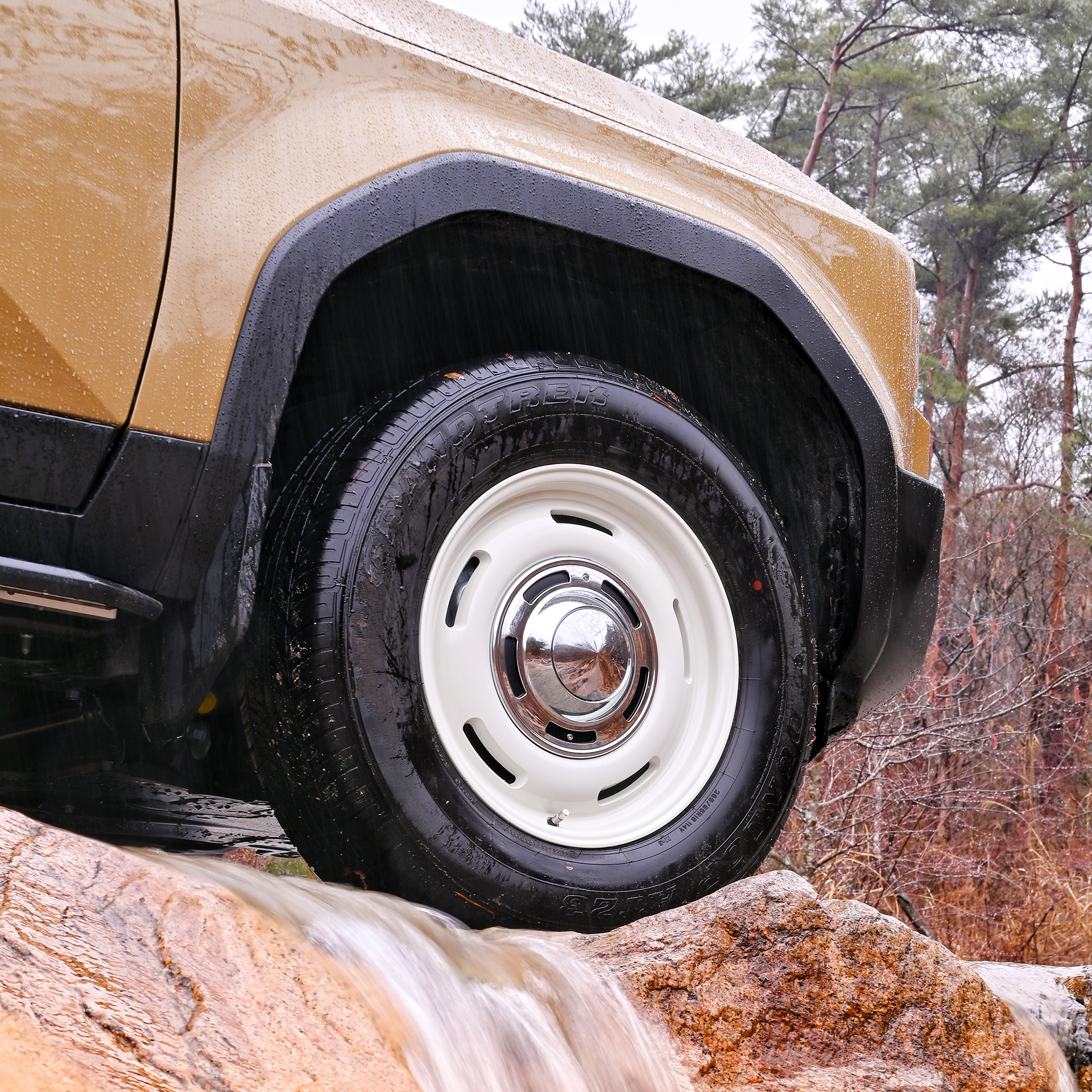 スチールホイールライクな印象のクラシカルでレトロな装いが醸し出す独特の存在感が往年の四駆らしさを色濃く感じさせる。