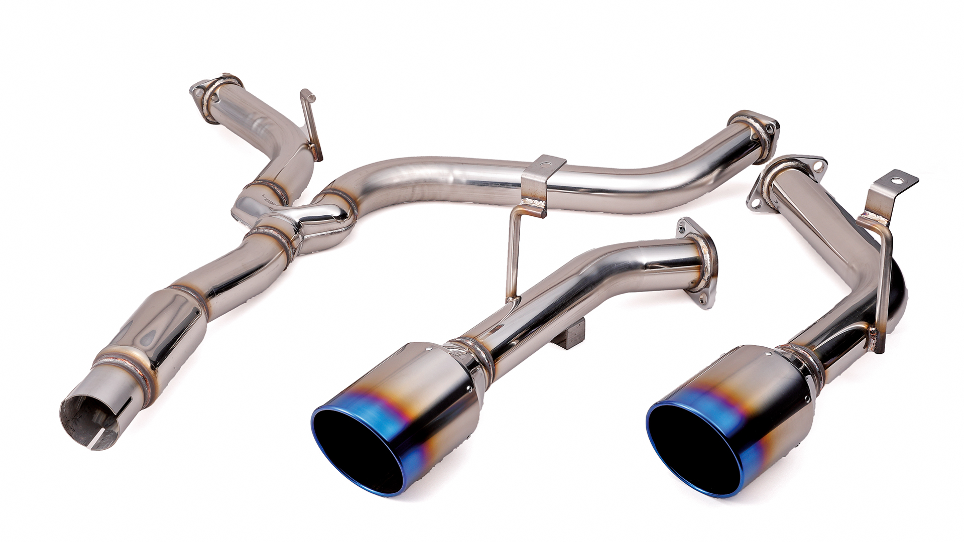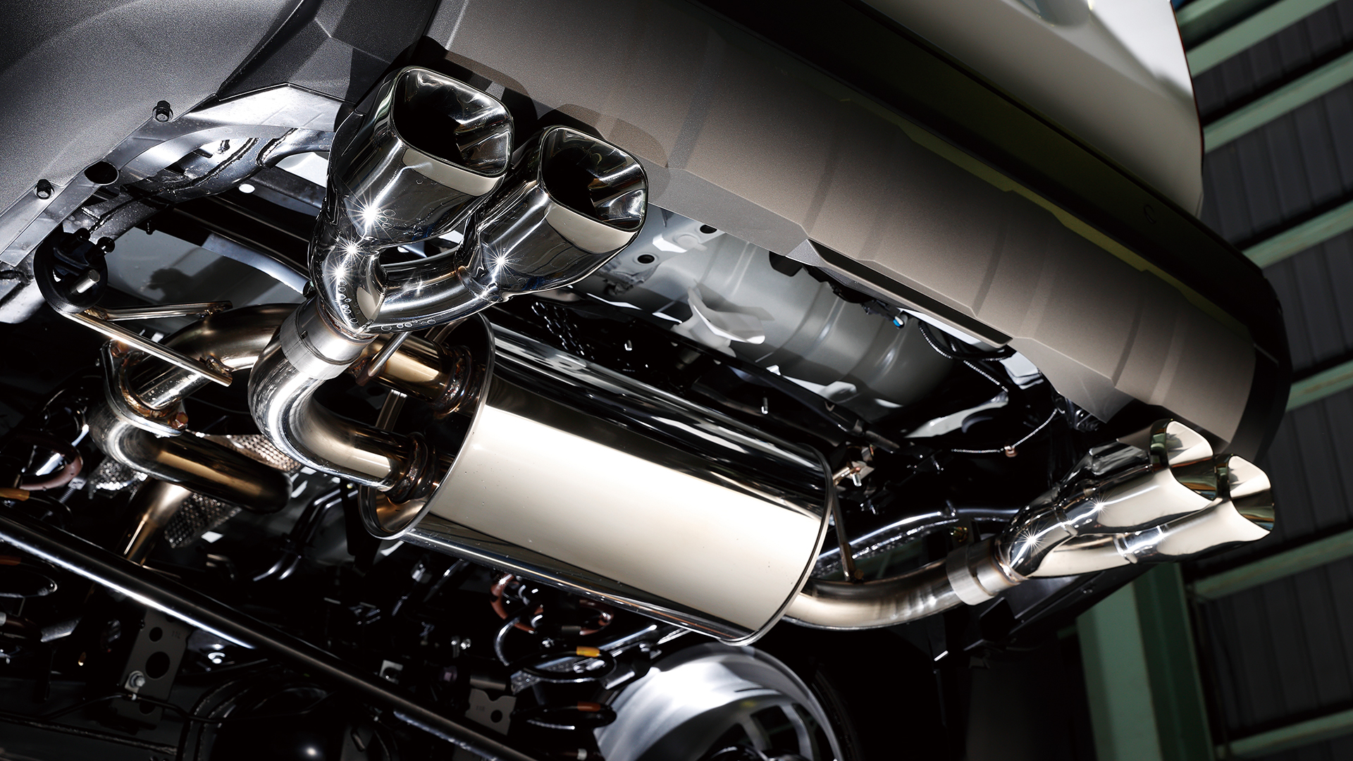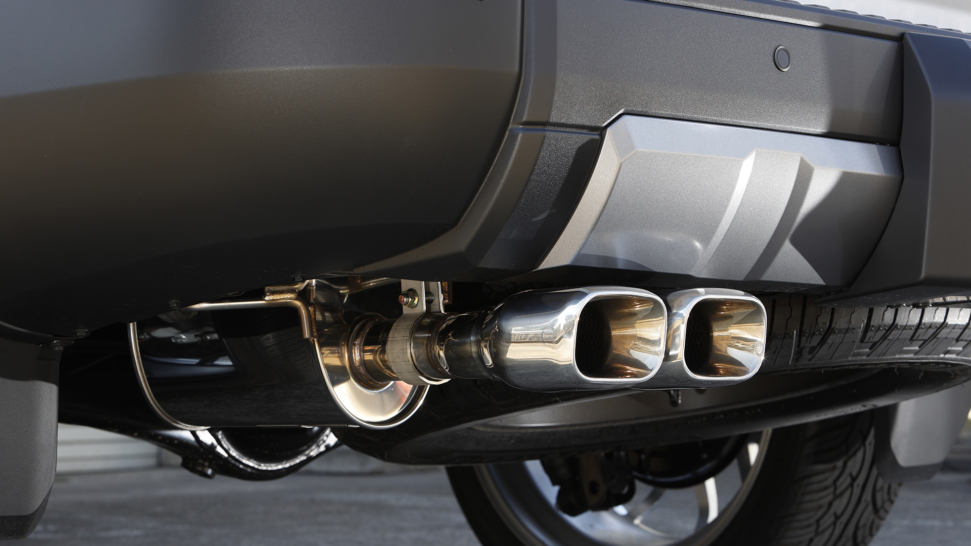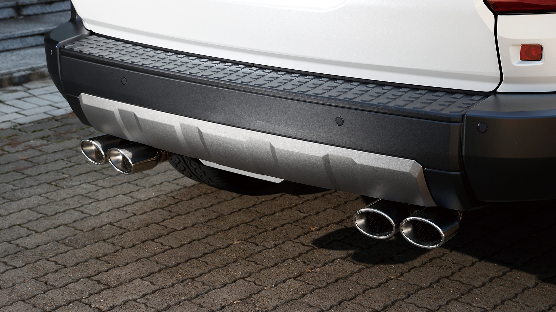 上記、片側2本出しマフラーより、リアビューでの存在感を主張できるのが迫力満点のスプリット4本出しマフラー。この4本出しも2本出しと同様に、スクエアとオーバルの2種類からテールエンド形状をチョイス可能。見た目にもアグレッシブなレイアウトだが、左右にフィニッシャーを配置することで排気効率も高められているのもポイント。ノーマルとは明らかに異なる存在感やスポーティな走りが楽しめるようになるのは大きなメリットとなるだろう。