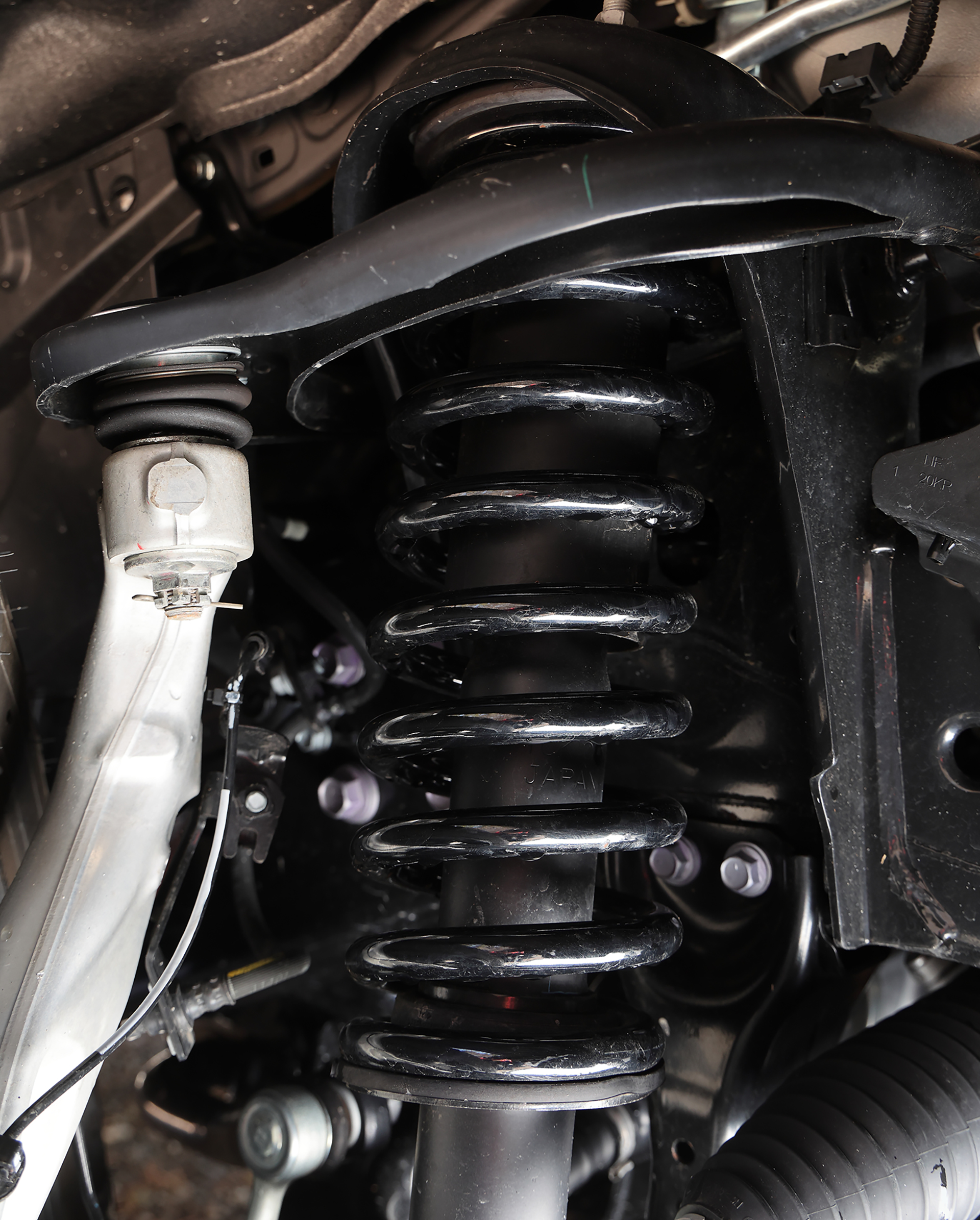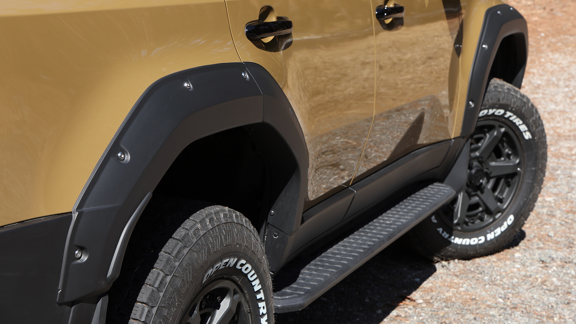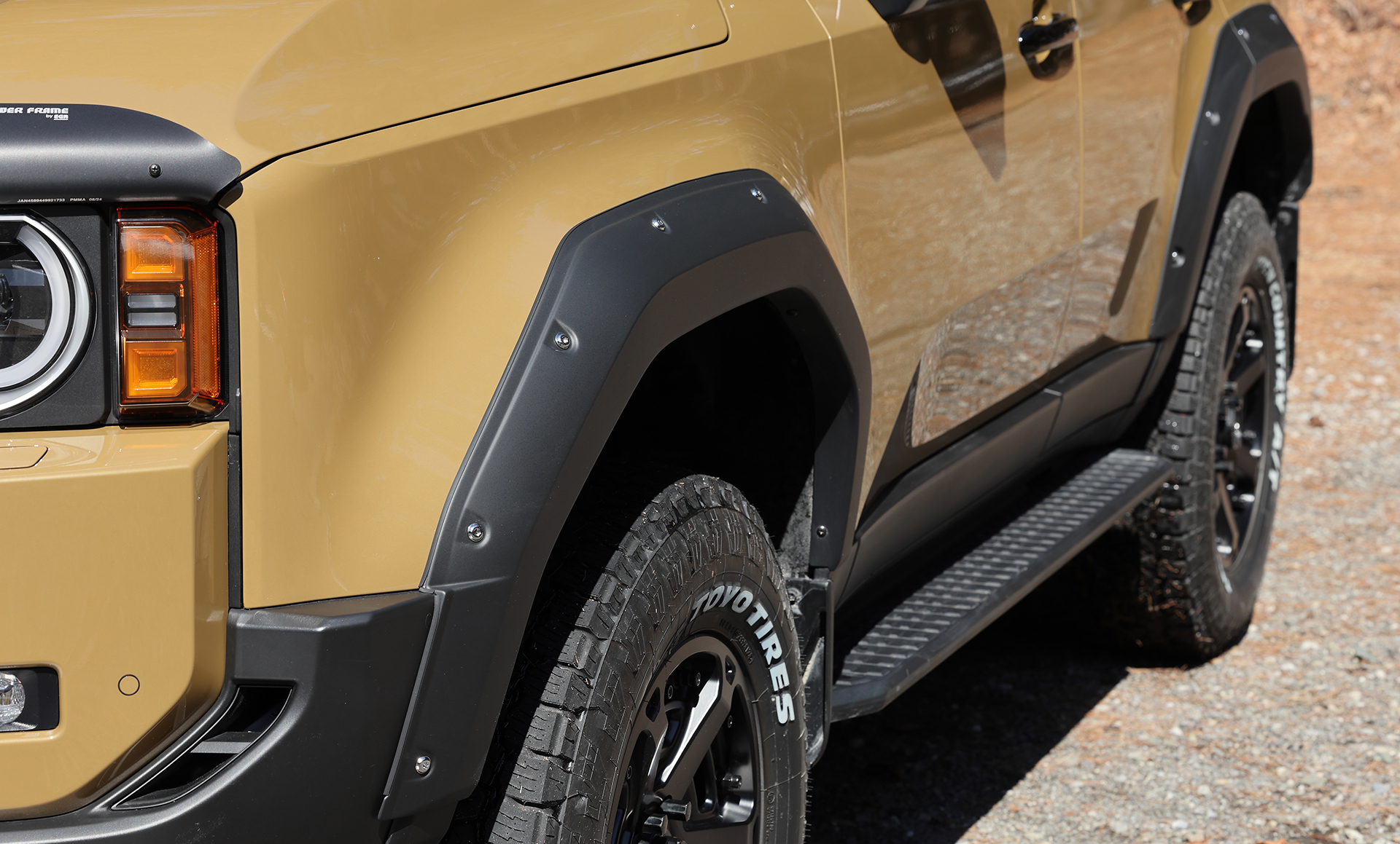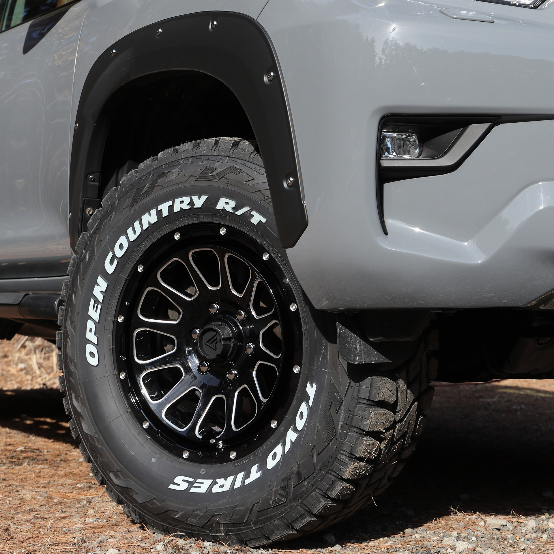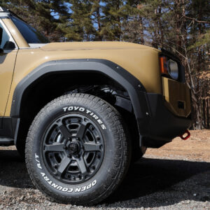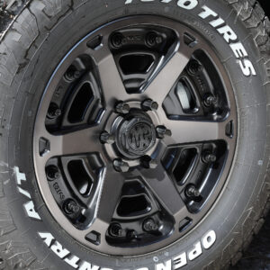 そこにクリムソンのMG・アーマーFF(18×8.0J+52)を合わせた。圧倒的に深いコンケイブデザインに、先端で分かれる力強いツイン6スポークによる強烈な立体感を持つ最旬ホイールで、250の足もとにピッタリの機能性を持つ。タイヤはTOYO TIRES OPEN COUNTRY A/TⅢ(265/70R18)で、ダミーボルト付のJAOS製フェンダーガーニッシュとも相まって、ワイルドなスタイルを構築している。