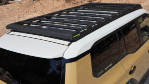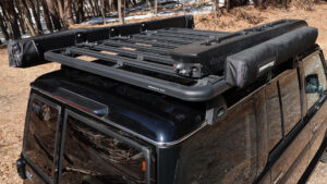 近年トレンドであるオーバーランドスタイルには必須のルーフラックにもアイアンマンをセレクト。ルーフと一体化したようなフラットタイプのルーフラックが人気だが、アイアンマンラックもその流れをキッチリと踏襲。見た目にナイスなゴツゴツしたフォルムを構築しているが、さらに拡張性に優れたギミックも採用。