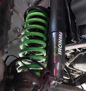 ランクル70はバンパーやルーフラックだけでなく、アイアンマン4×4のサスペンションキットで2インチアップし、ショックも前後ともアイアンマンで換装。とりわけランクル第二の故郷とも言われるオーストラリアで鍛え上げられた足回りはしなやかで腰があるイメージだ。
