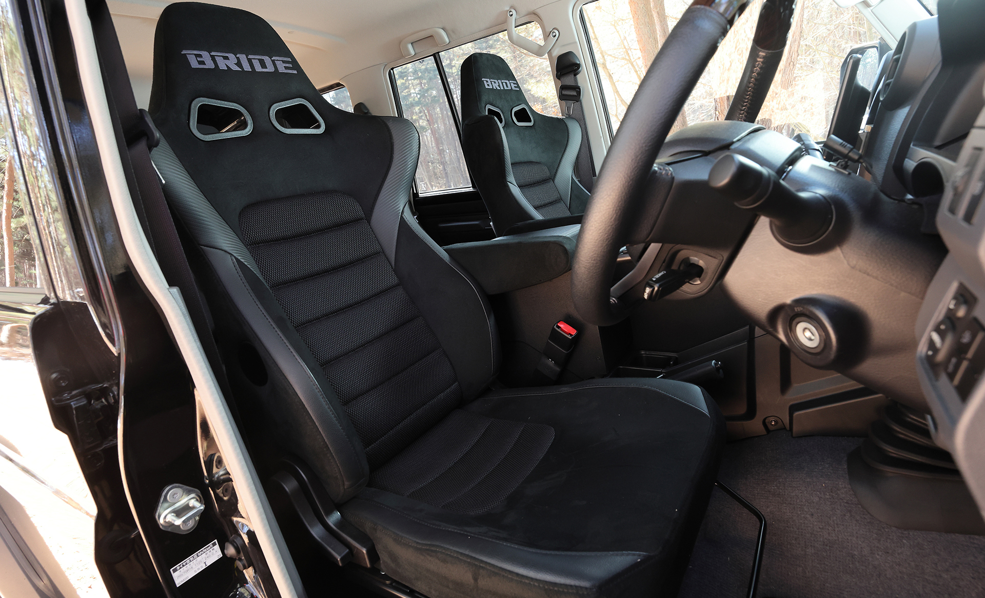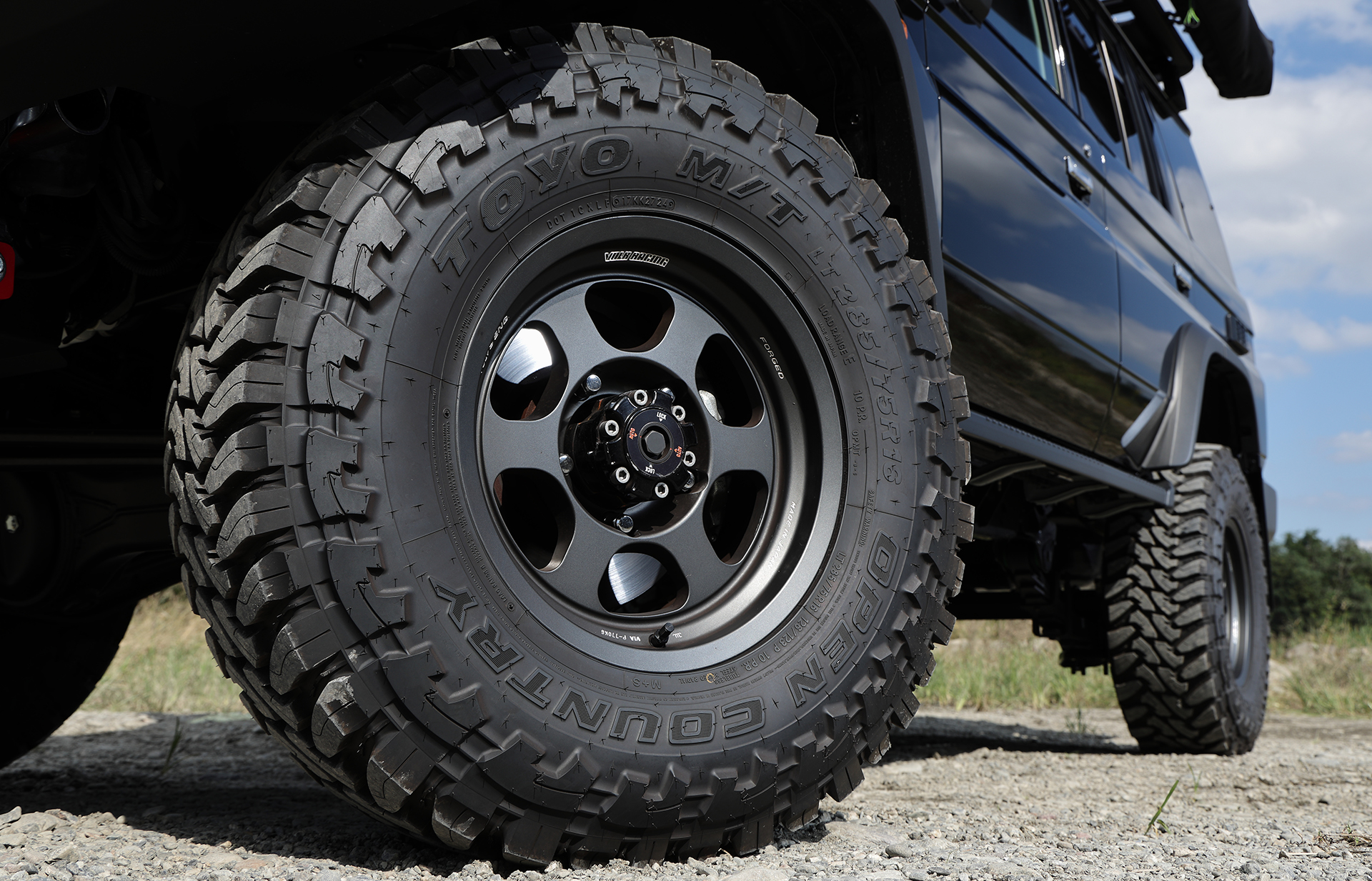 足もとにはオープンカントリーM/T(LT285/70R16)と国産鍛造ホイールの最高峰であるRAYS・ボルクレーシングTE37XTをセット。元々ハイレベルなパフォーマンスを誇るナナマルの走りをオン&オフの両面から磨き上げている。