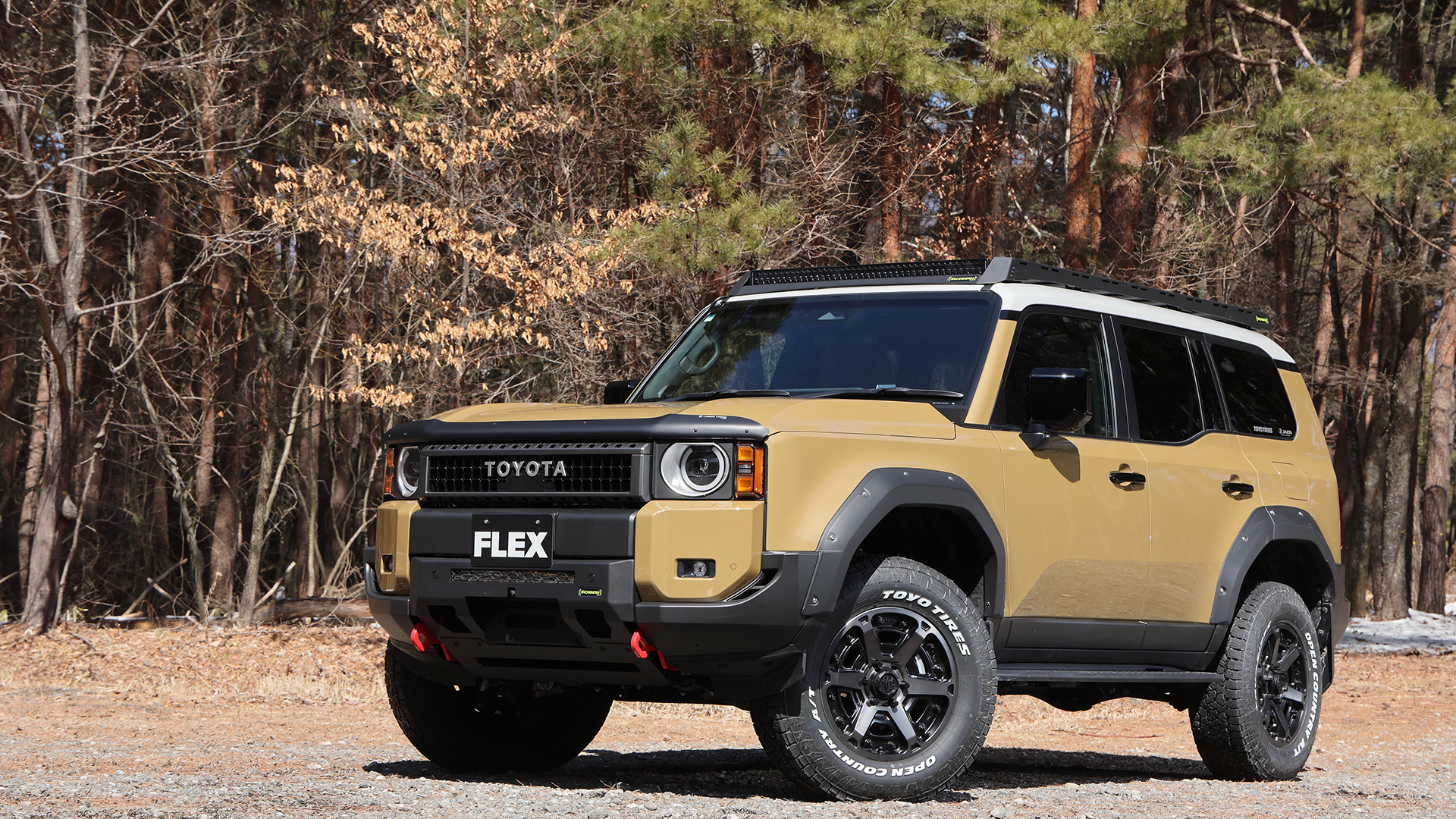 現在開発中のFLEXオリジナルのリフトアップサスペンションで2インチアップしたランドクルーザー250。
