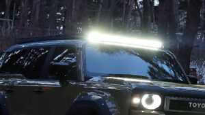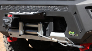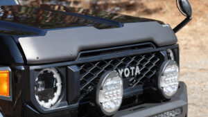 よく見るとかつて日本で流行ったようなクロカンバンパーとは一線を画す造形美が見て取れる。しかもウインチ内蔵タイプでけん引フックは付属、LEDフォグやアシストランプもオプションで組み込むことができそうだ。