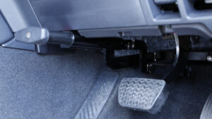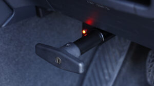 それぞれその構造はシンプルな物理的セキリュティだが、だからこそ効果が高い。これらを壊さないと車両盗難はできないが、時間が掛かるので犯行が発覚する可能性が高くなるというワケだ。自動車盗難の抑止効果が高い防犯アイテム 『ブレーキペダルロック』と 『CANプロテクションキット』を、FLEXで手に入れて、愛車の盗難対策をしよう!『ブレーキペダルロック』は文字通りブレーキペダルを物理的に固定するという防犯パーツで、ブレーキペダルのアームの奥に取り付けてロックをするとアームが固定され、ブレーキペダルを踏み込むことができない……。つまり、結果としてエンジンが掛からないという仕組みだ。