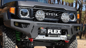 また上記でも伝えたが、このアイアンマン4×4のバンパーやラックといったカスタムパーツを、FLEXでは今後も積極的に取り扱っていくという。対象は本記事の再再販ランクル76と150プラド、上記で紹介したランクル250、そしてまだその姿を披露していないが、ランクル300もアイアンマンスタイルにカスタム可能。
