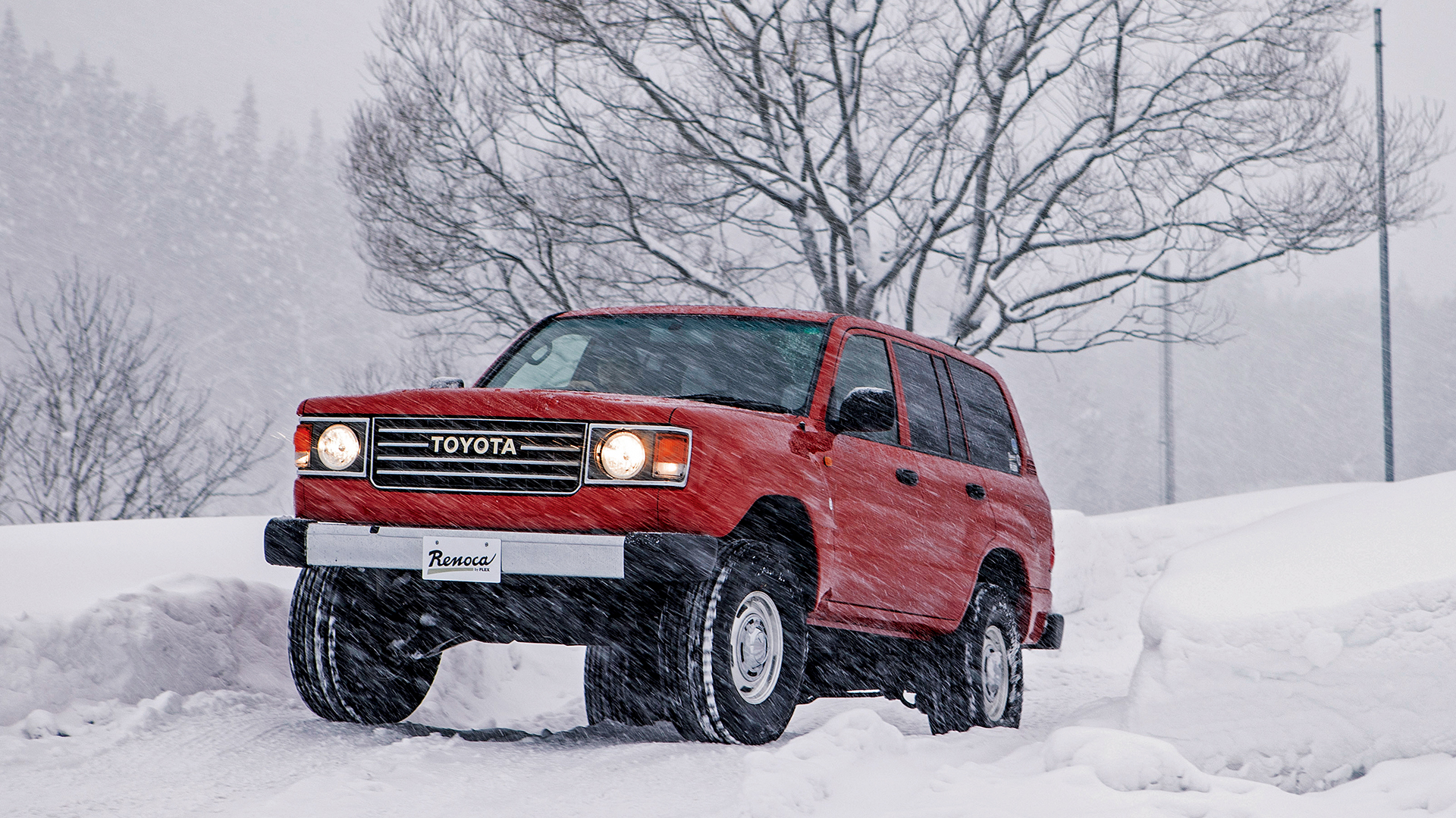 Renocaブランドのフラッグシップモデル『106(イチマルロク)』。このモデルの素晴らしいところは、どんなボディ色でもピッタリとハマること。最大の特長はネーミングが示す通り、ランクル100をベースに、丸目2灯(or角目4灯)のランクル60フェイスをインストールしたコンプリートモデルであること。今回は60前期型の丸目フェイス換装モデルを中心に掲載したが、レトロな外観にそぐわないパワフルな4.7ℓV8ガソリンエンジンで、走りが楽しめるのもリノカの魅力。前後バンパーはメッキタイプをチョイスし、それに合わせて、ホイールはクリムソンのDEANシリーズを履き、全体の雰囲気を統一した。