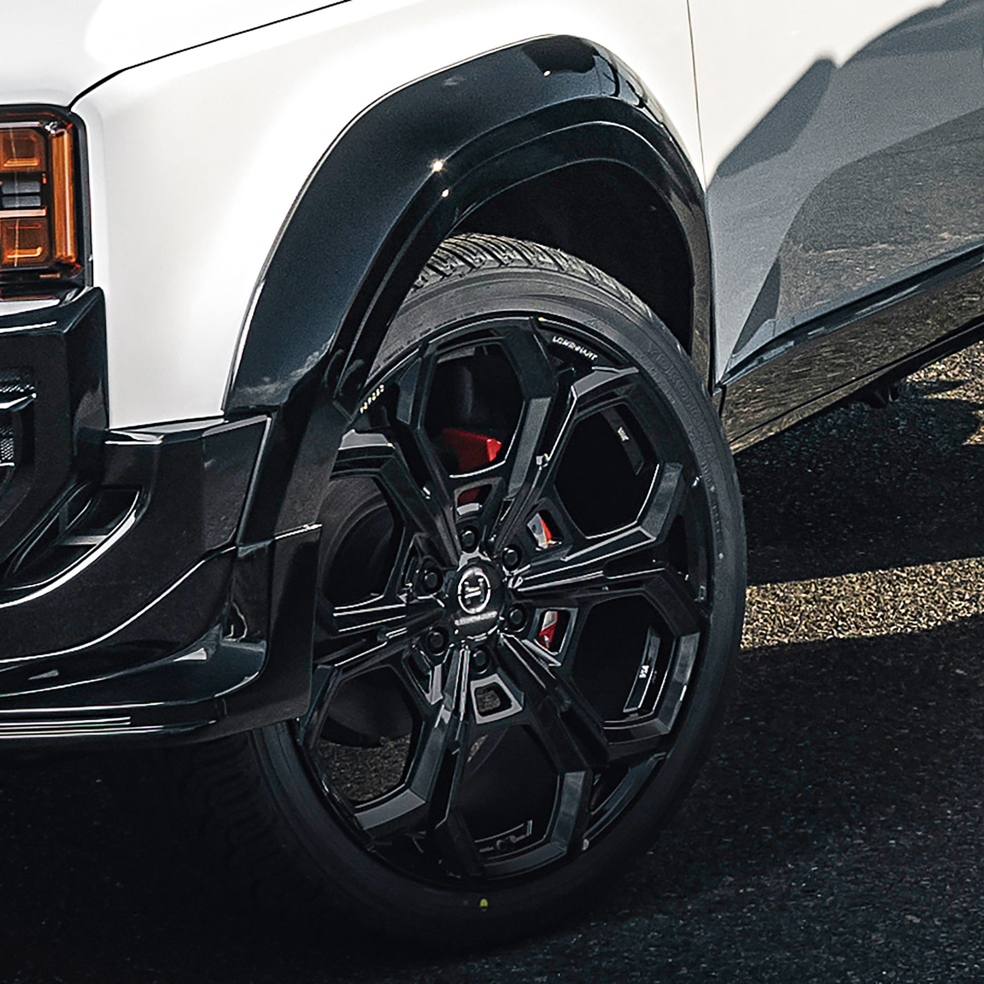 タイヤサイズはヨコハマG003の33×12.5、ホイールはレーベンの22インチに変更。