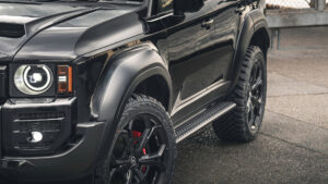 8㎜ワイドのオーバーフェンダーやドアアンダーパネルは視覚的なローダウン効果を狙いブラックアウトするなどペイントワークも取り入れている。パーツの交換に加えてこうしたカスタム技術を取り入れてアーバン&スポーティーなスタイリングとなっている。