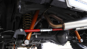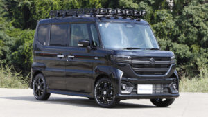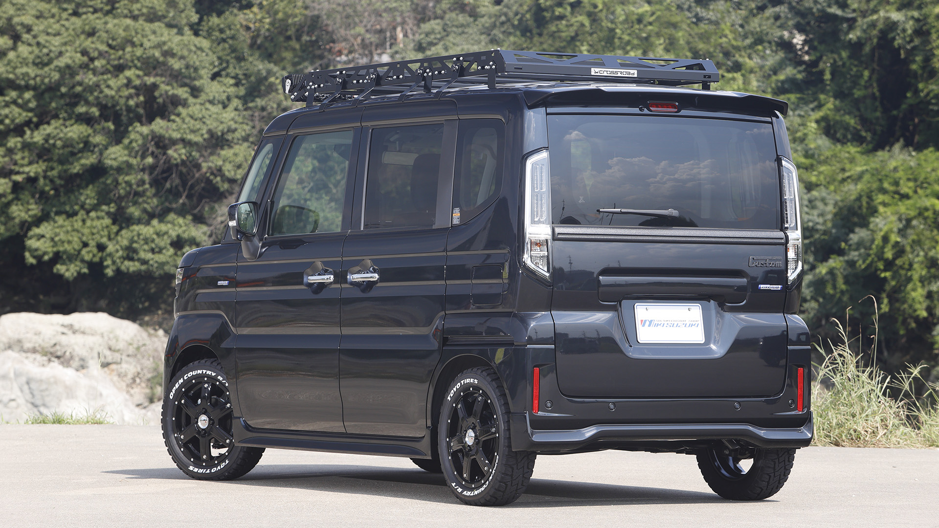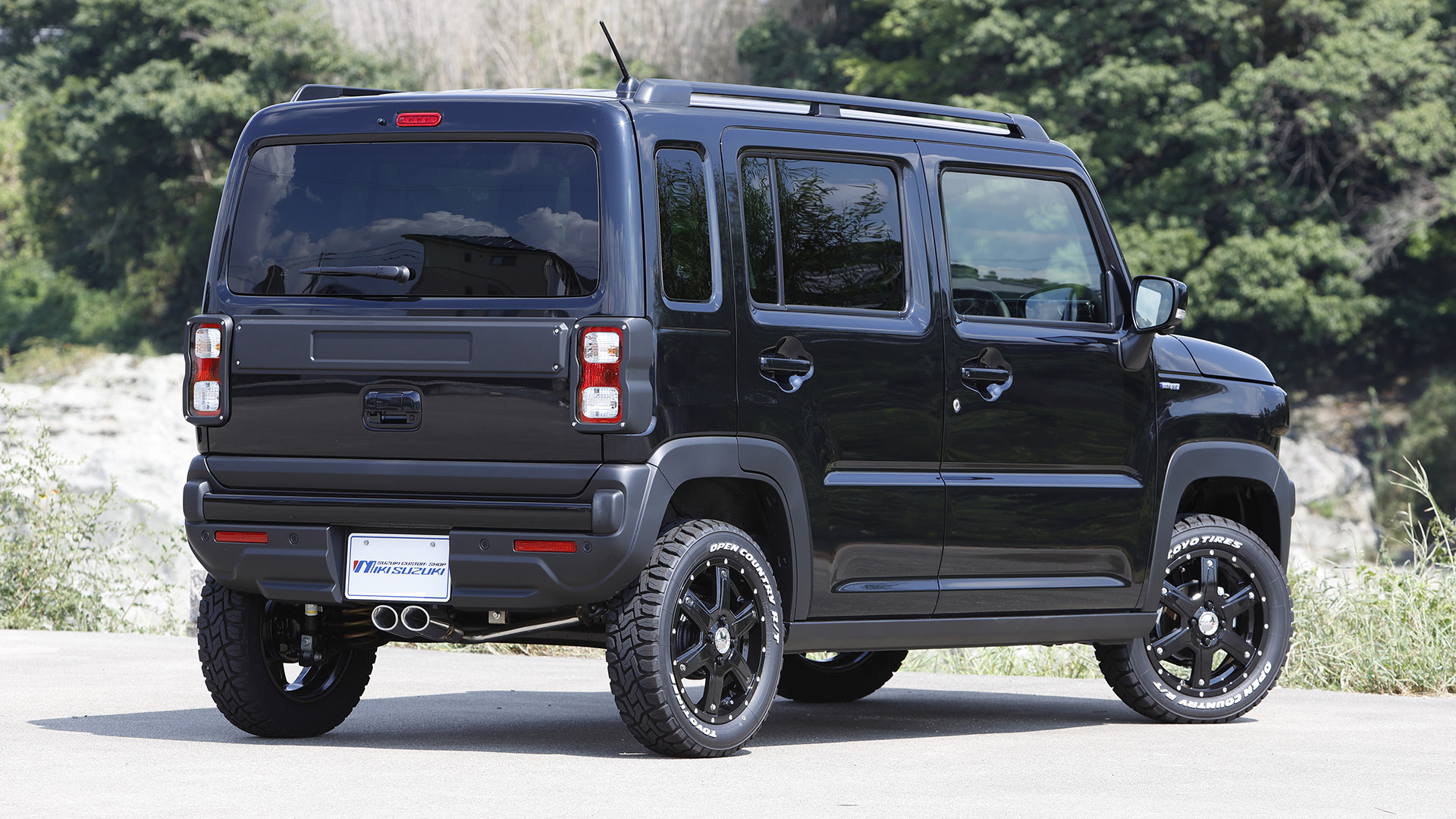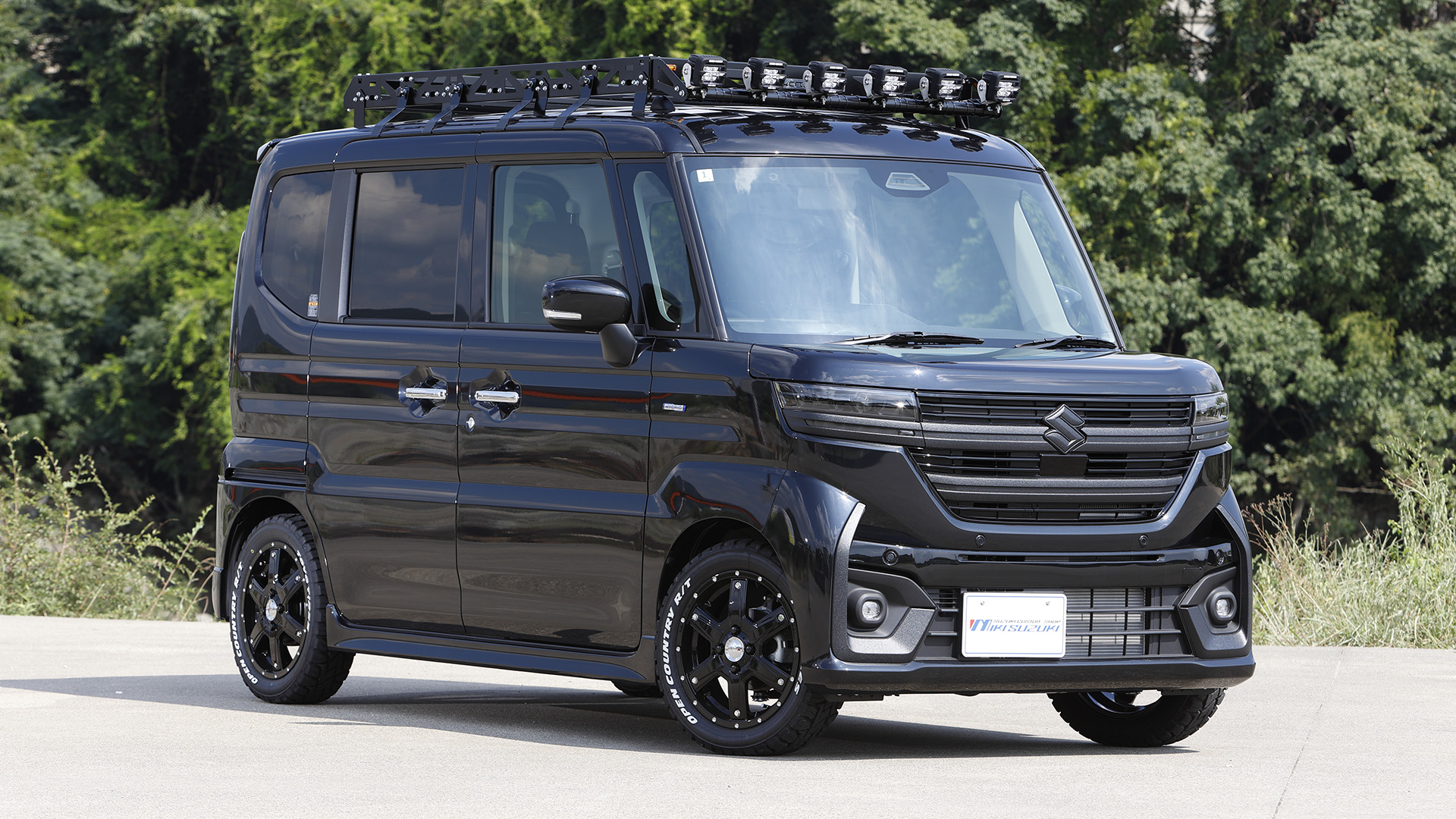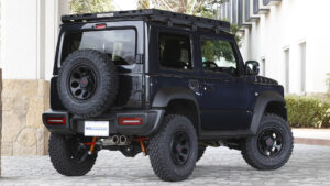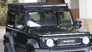 スズキの正規ディーラーでありながら、保安基準に適合する範囲であればカスタムにも対応してくれるユニークなお店。それが三木スズキだ。タイヤやホイールを変更するだけでも入庫拒否となるディーラーがあるが、三木スズキでは車検に適合するのであれば、リフトアップした車両でもOK。ちなみにデモカーのジムニーシエラは約3インチリフトアップするが、ショックやブレーキホースも変更。キャスター角も補正されており、ノーマルと比較しても、ハンドリングの違和感は一切感じられない。なおジムニー&ジムニーシエラ専用に設計されたCROSS ROADのルーフキャリアは、屋根をほぼ埋め尽くすほどの広さが魅力だ。おそらく今後はジムニーノマド用も登場すると思われるので、そちらも期待したい。
