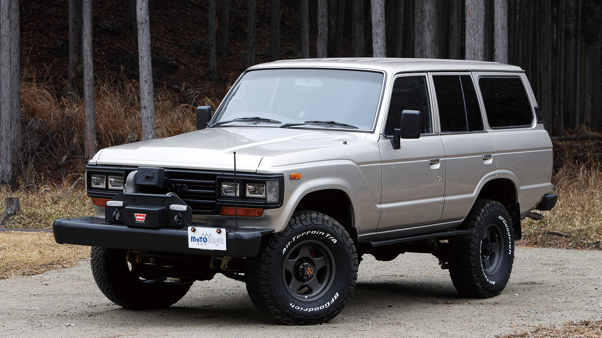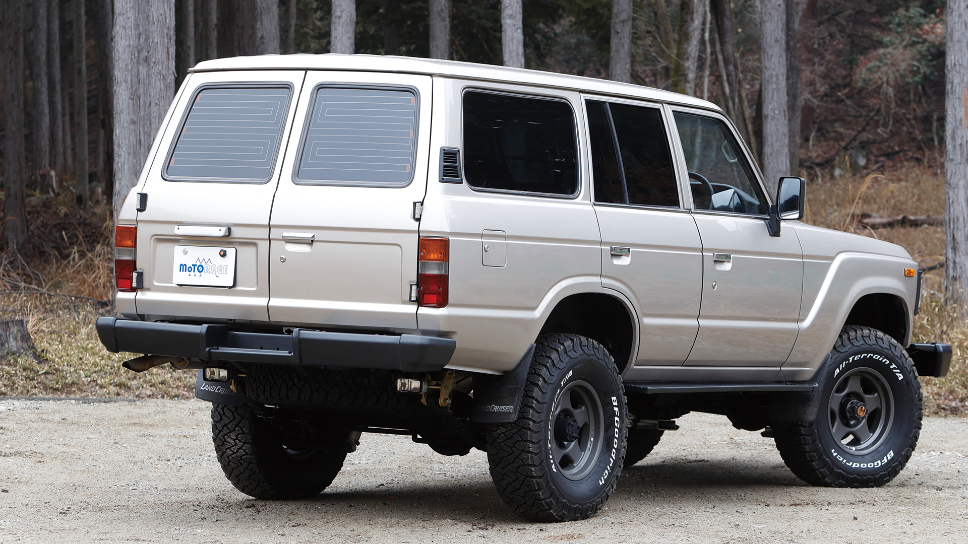 モトレージの歩みとほぼ同じ年月を重ねるランクル60。同じクルマを長年愛用し続けるユーザーのために、モトレージではオリジナルパーツを継続して販売中。デモカーの60はオールペンを実施し、足回りもオリジナルのスプリンングでリフレッシュを実施。ヘッドライトは小糸のLEDに変更し、さりげなくイメージチェンジを実施。DPF装置を装着しNOx/PM適合車両となっており、日本中どこでも胸を張って乗れる仕様となっている。