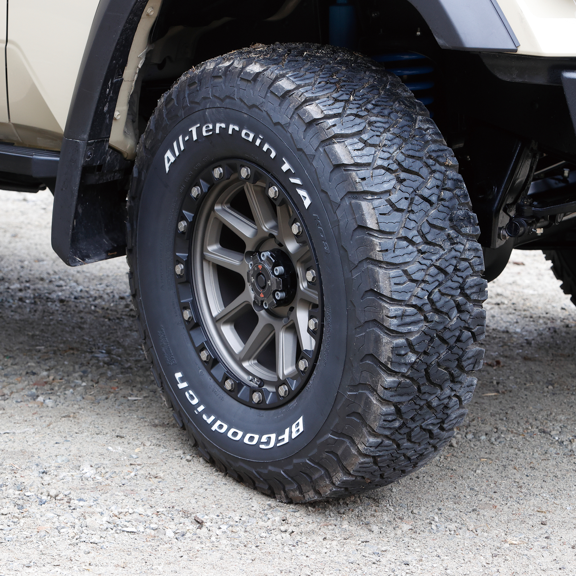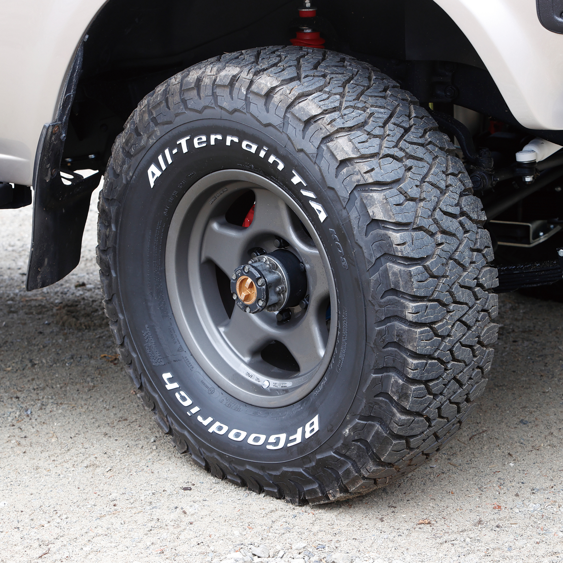 約2インチのリフトアップによって、285/75R17という、細身大径なタイヤをチョイス。ノーマルフェンダーでも装着できる、ベストな組み合わせと言えるだろう。