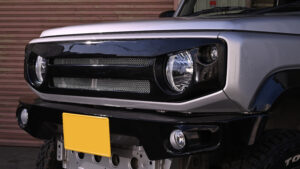 本格的な競技シーンからフィードバックされるリアルオフローダーな商品展開に加え、シティオフローダーとして街中で映えるスタイリングの提案など、様々なカスタムジャンルに最適なカスタムパーツを提案し続けるオリジン・ラボ(大阪府)。一昨年あたりからジムニー専用のオリジナルバンパー制作を進めており、満を持してのオリジナルグリルをリリース。一世を風靡したバッドフェイスデザインを盛り込みながらもグリル部分でさらに個性を際立たせつつも2万円台前半とリーズナブルな価格帯も特筆物だ。