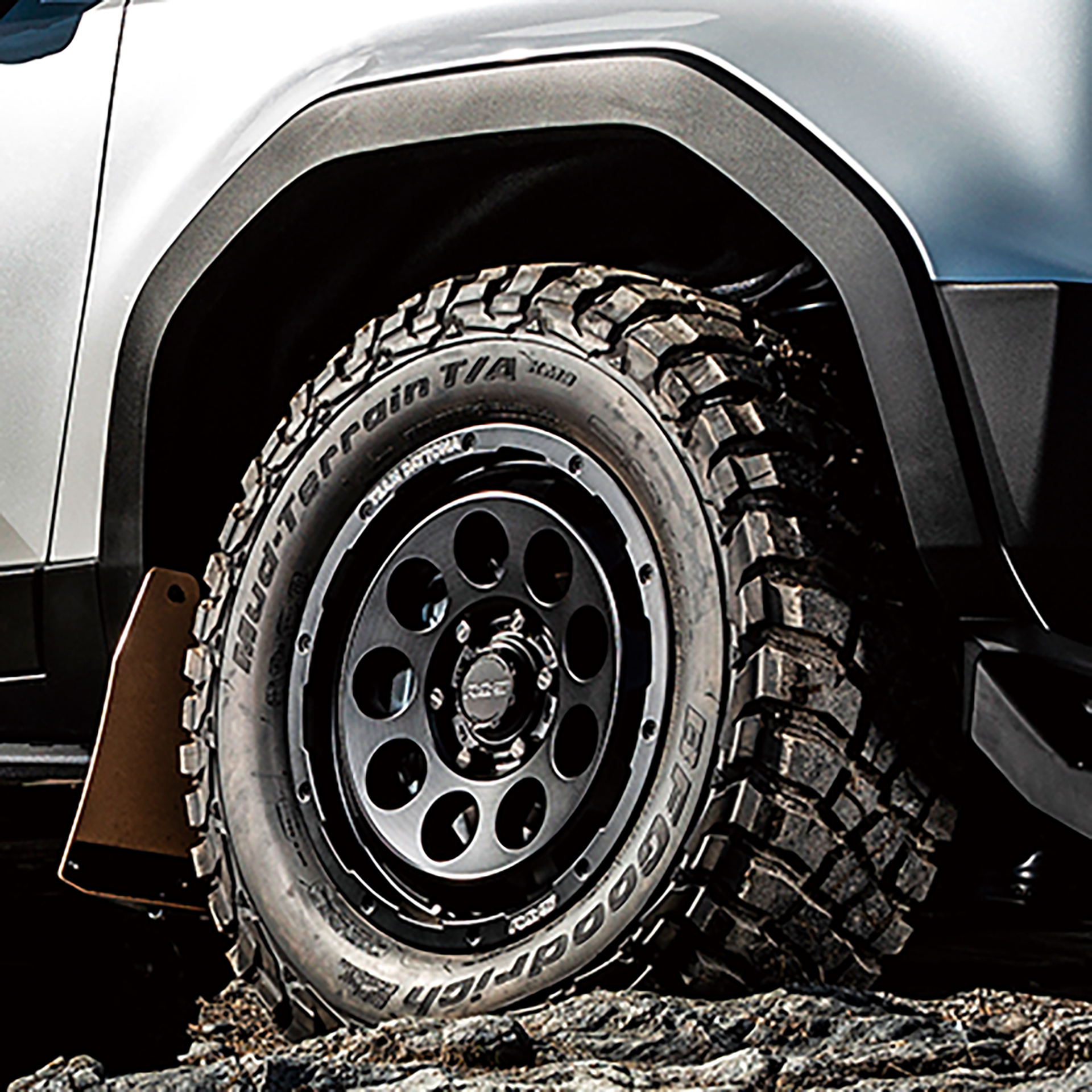 オフロードホイールの王道とも言えるトラディショナルな丸穴ディスクをTEAM DAYTONAのセンスでリデザインしたのがD9である。