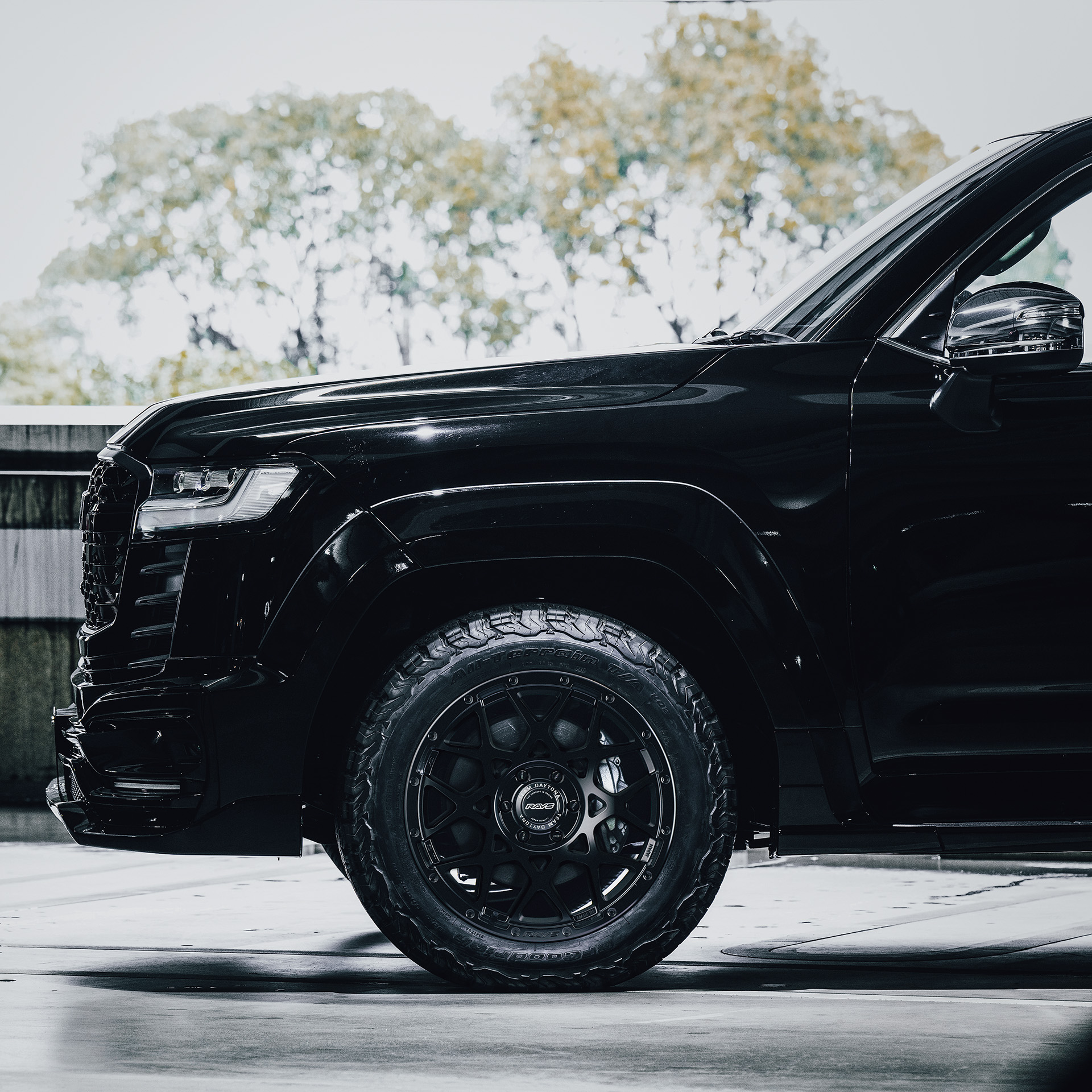 RAYS発の4WD・SUV専用ホイールブランドであるTEAM DAYTONA。M8 BLACK EDITIONは、ランドクルーザー250やランドクルーザー300、LX600の足もとに、フラッグシップにふさわしい高品質な佇まいを演出する。開発ベースモデルはM8。