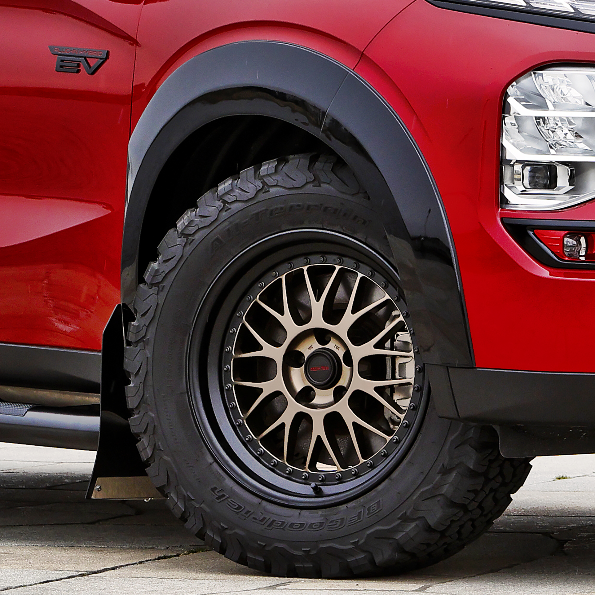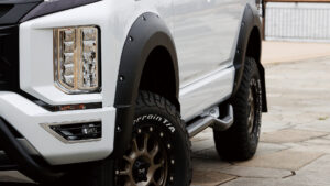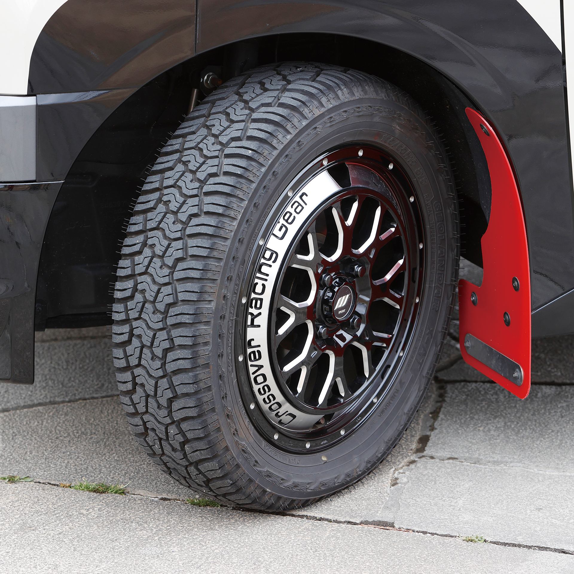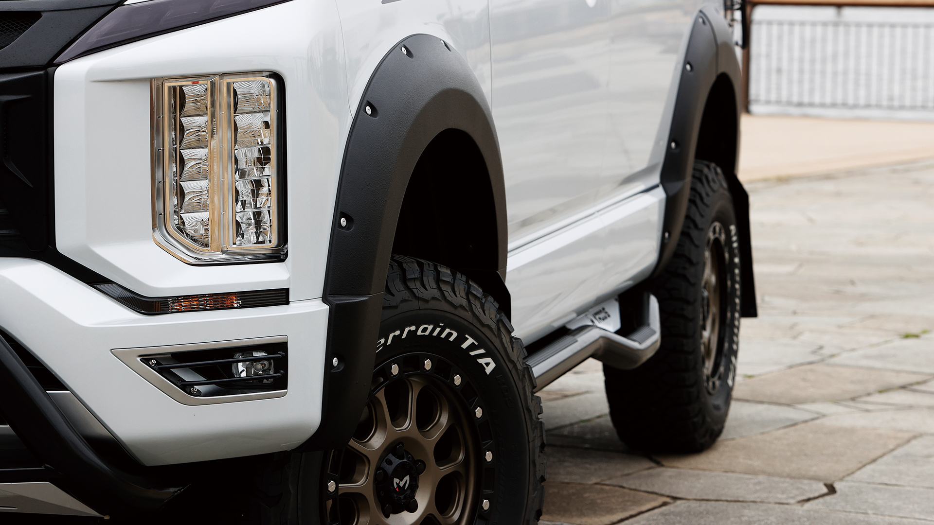 タイヤを飲み込ませつつ、横方向に安定感を増すため30㎜オーバーフェンダーも追加した。