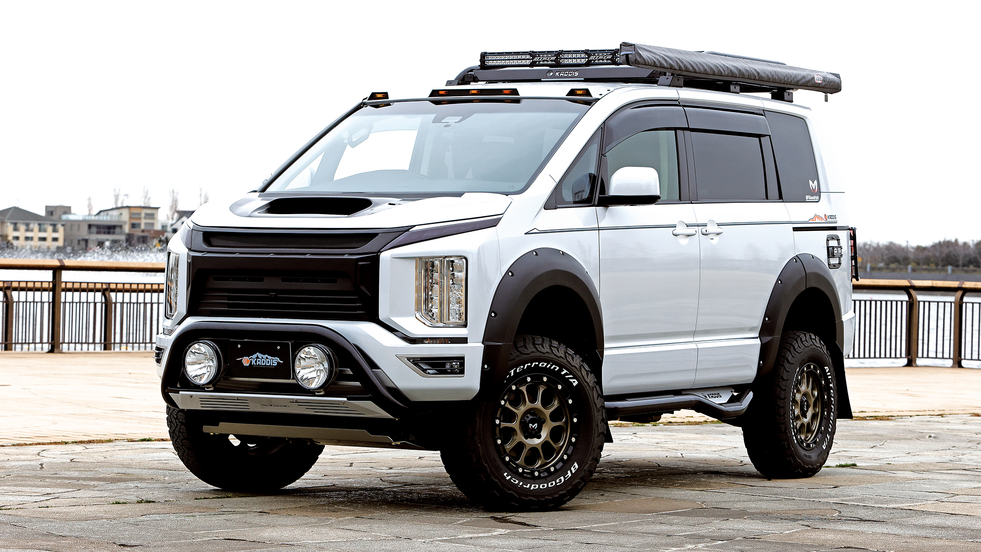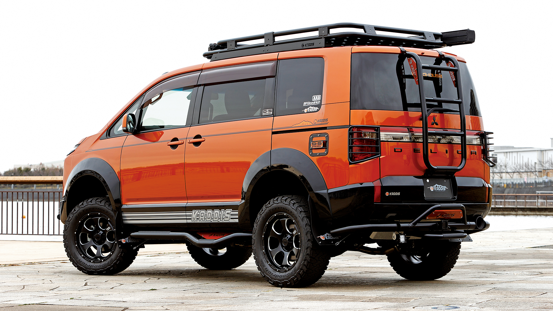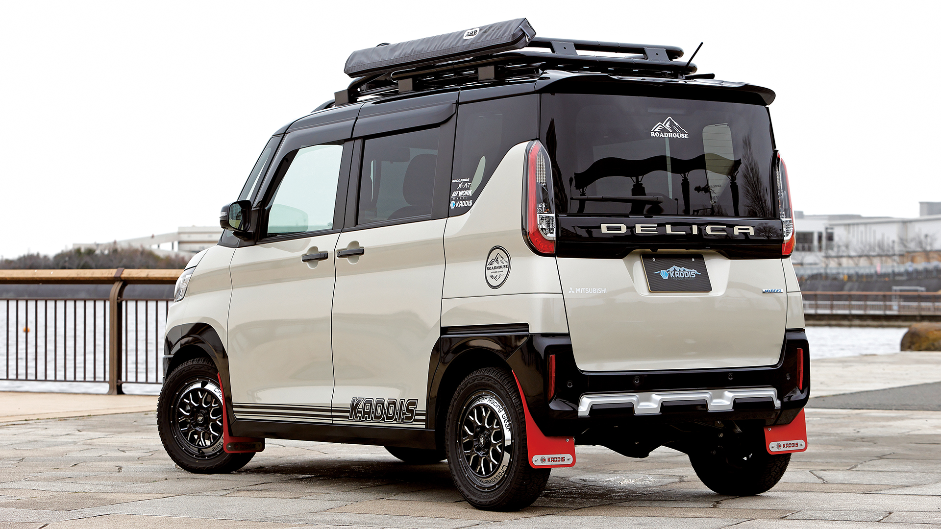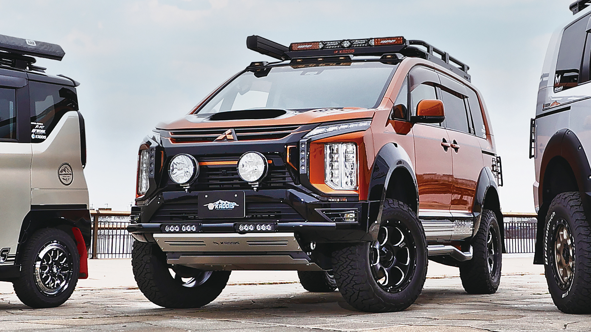 ロードハウス〝最大の主力車〟はデリカシリーズだ。D:5はリフトアップキットとサスペンションチューンで、55インチや7インチのハイリフトスタイルを演出。デリカミニは1インチアップし、ノーマルより大きなATタイヤを実装済みだ。