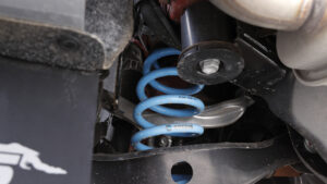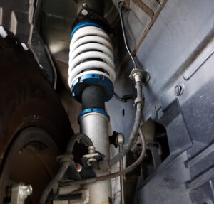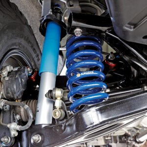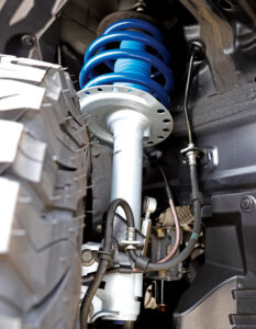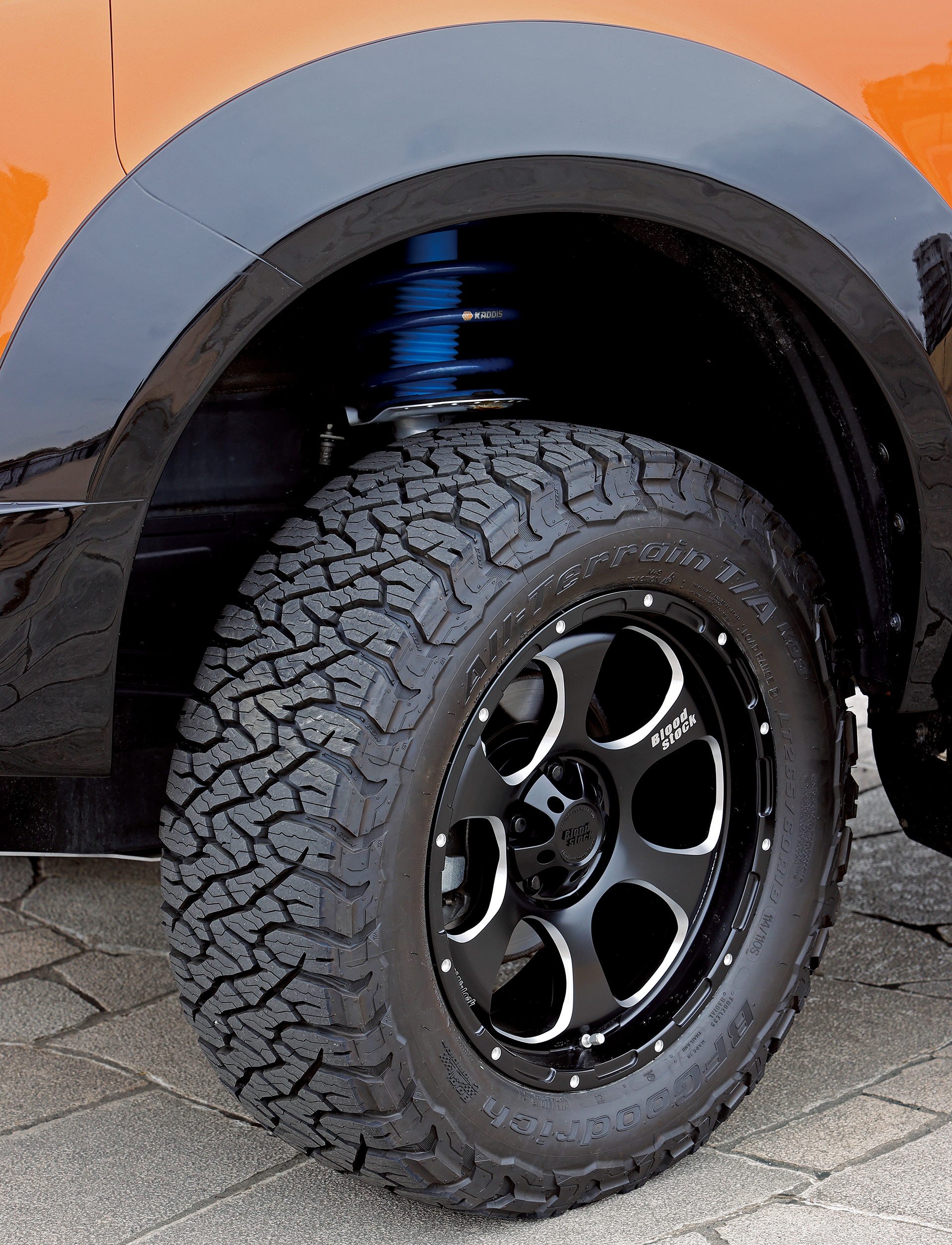ロードハウスの車高調ステージ3とハートランド・6インチアップキットの組み合わせで計7インチのリフトアップ!まさに〝エクストリーム〟スタイル。タイヤはBFGの最新オールテレーンタイヤKO3のLT265/70R17へ大幅サイズアップ。