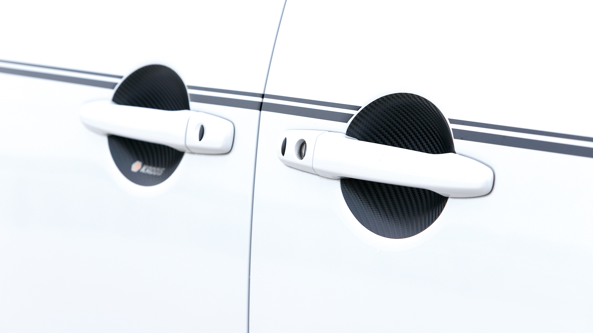 なお、ドアハンドルプロテクターやリアスカッフプロテクター、テールレンズガード、マッドフラップといったガード系のパーツや、エアコンの効きを改善するダッシュマットなどインテリア品も選びきれないほど装着済み。これらは気軽にカスタムを始められるパーツでもある。 -