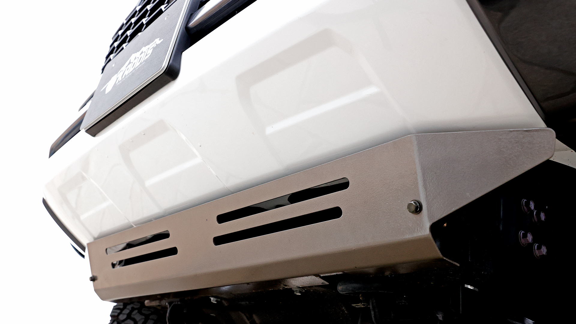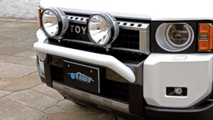 バンパーの中央に追加するファイバープロテクションでオフロードテイストを演出。軽量な樹脂素材を使い、ノーズ部の重量増加によるハンドリングの悪化も防げる。またバンパー下にはスキッドプレートを追加し、下回りやメカニズムをしっかり保護。