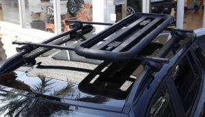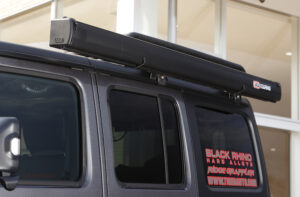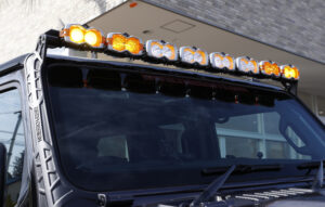 ウインドーの上には、NOVSIGHTのLEDを装着。アルミ製のルーフラック、これにARBのサイドオーニングを追加。スタイルだけでなく、機能性も高まるのでアウトドア派のユーザーには必須アイテム。