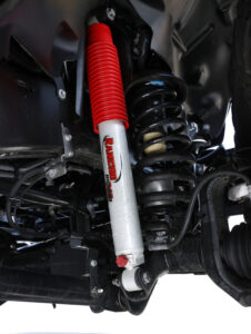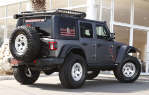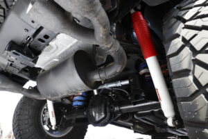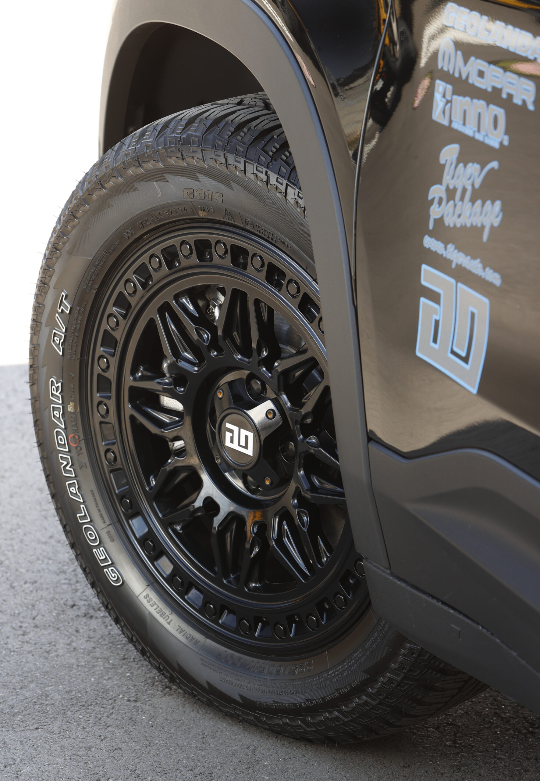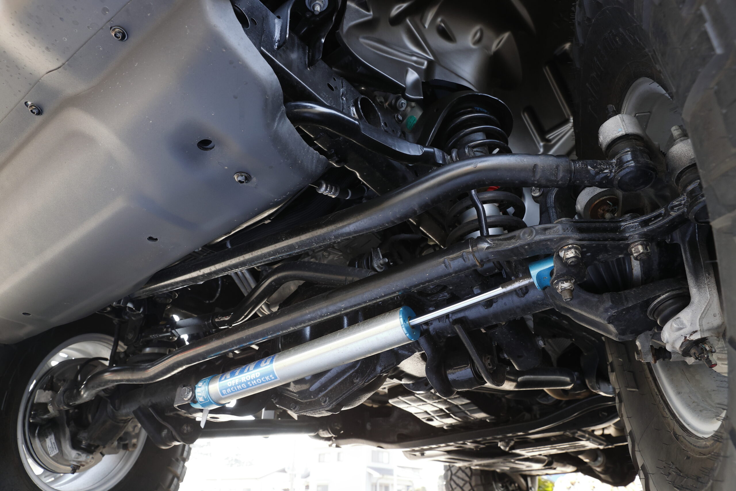 MOPARのスプリングにランチョを組み合わせ2インチリフトアップを実施。ほかにも細かな補正を行ない、自然なハンドリングを実現する。