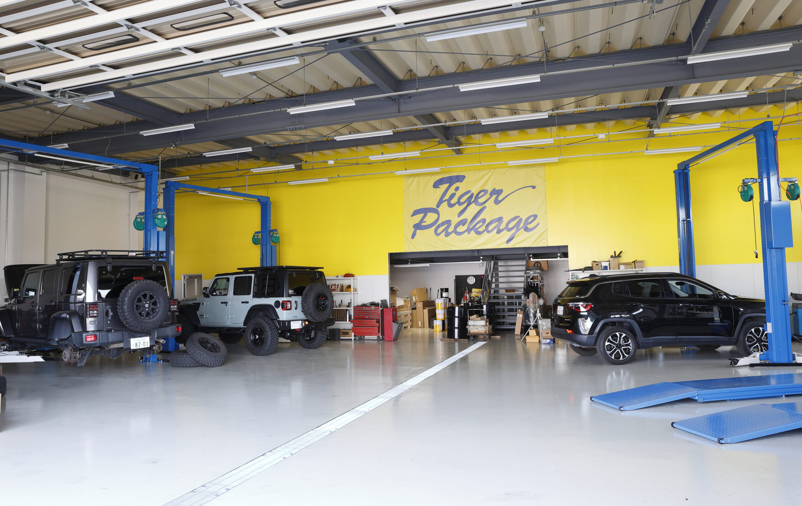 以前は考えられないことだったが、最近は正規ディーラーでありながらカスタムにも対応してくれるお店が増えている。また最初からカスタムを行ない、スタイリッシュに仕上がったクルマをリーズナブルに購入できるコンプリートカー販売というスタイルも広く浸透しているが、これらのスタイルを一早く採り入れたのが、ジープの正規ディーラーとカスタマイズショップを展開するタイガーオートだ。