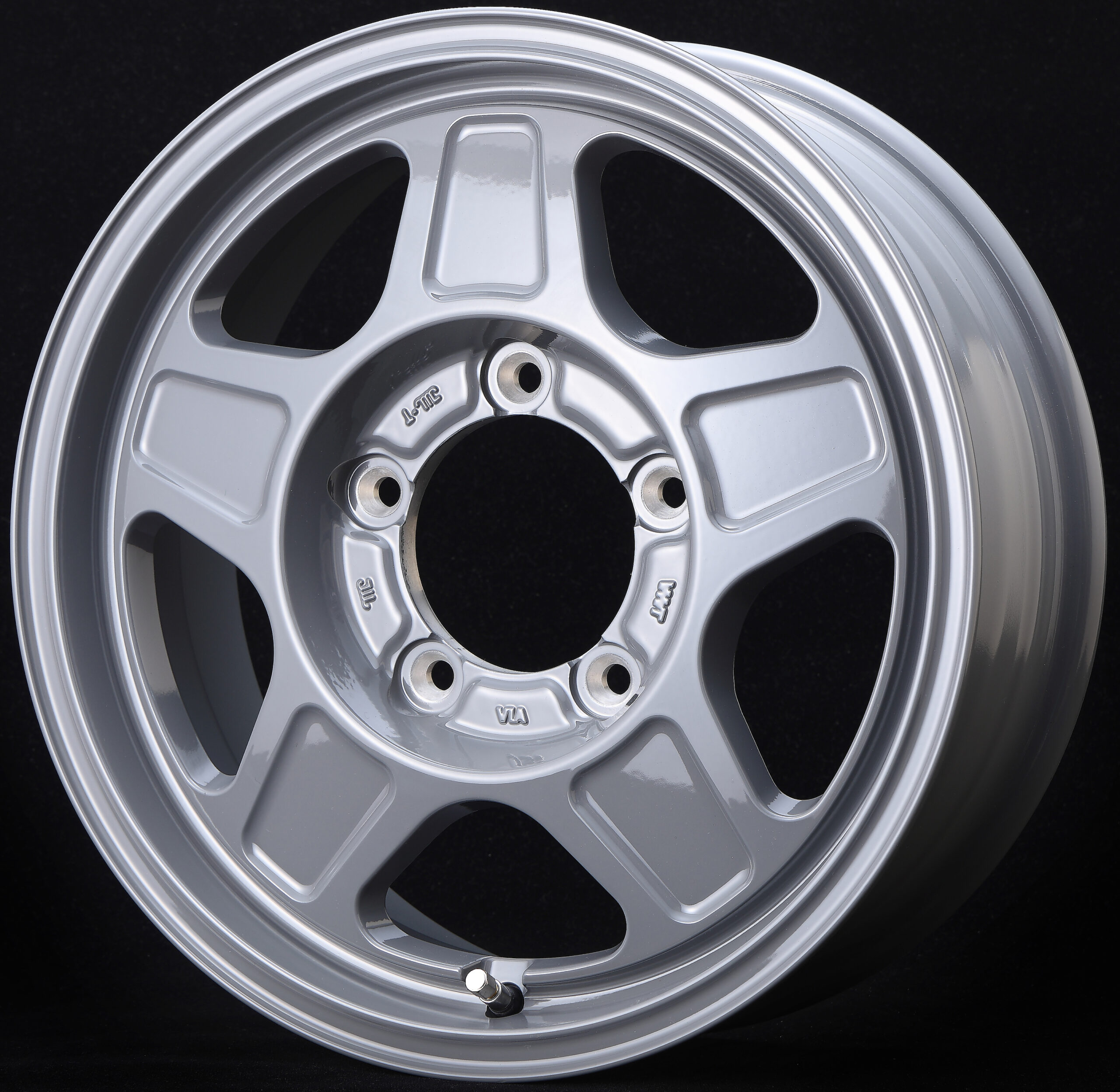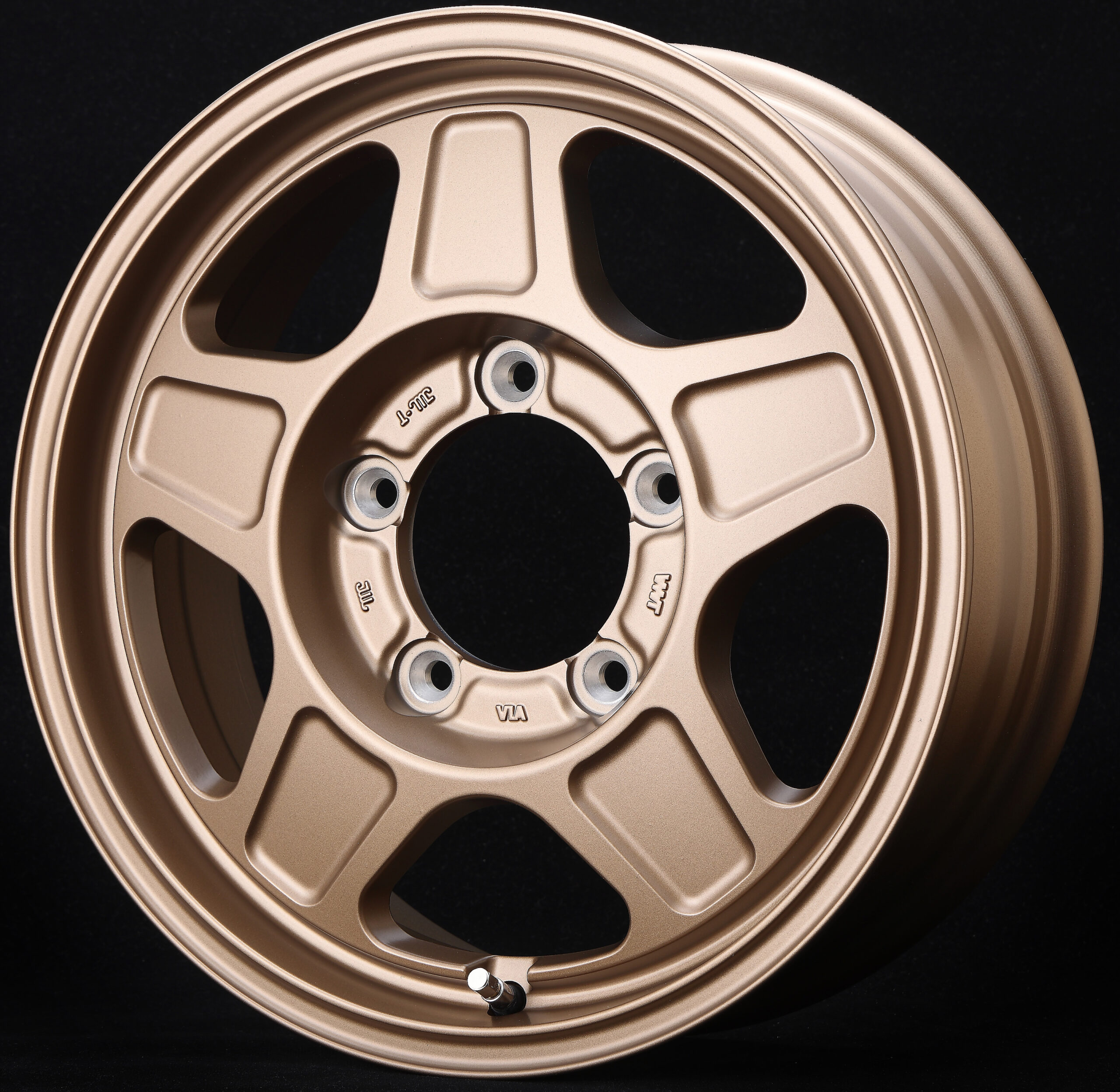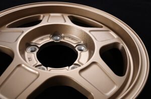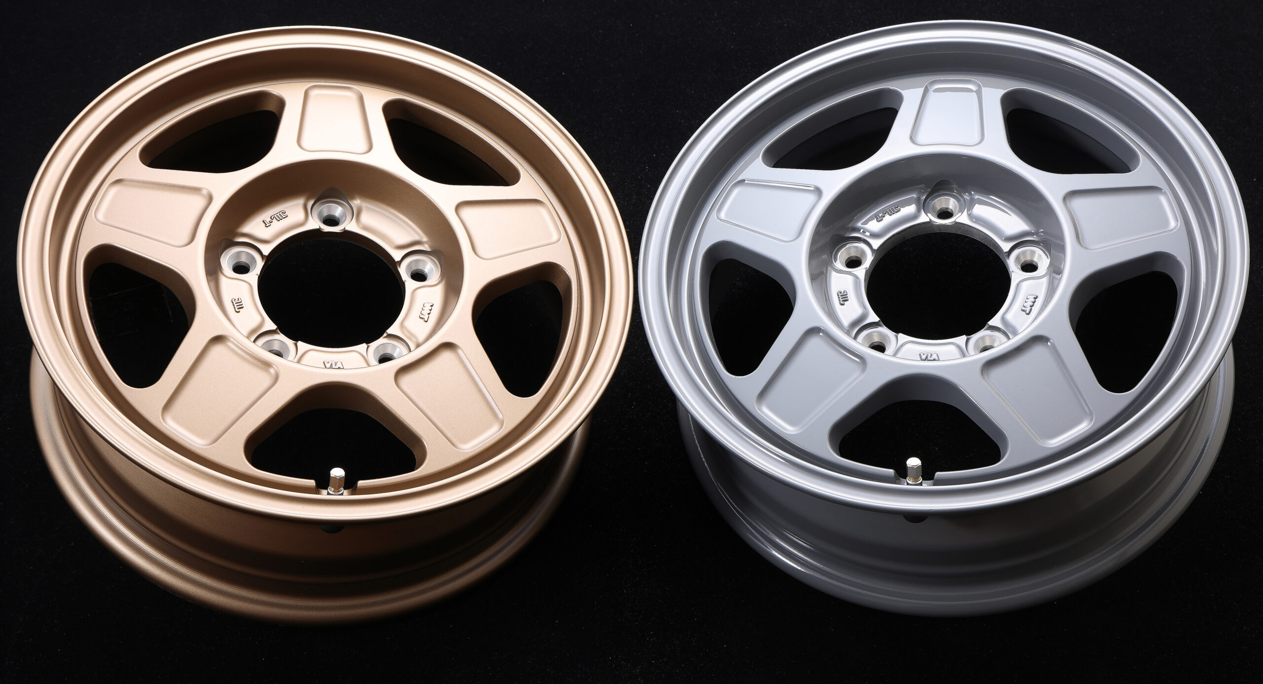 ジムニーJB64用の16×5.5J+20と、ハイエース用の16×6.5J+38サイズに追加された新カラーがマットゴールド(MG)とグレー(GRAY)。クラシカル&レーシーな佇まいのマットゴールド、艶有りでより鉄チンライクな雰囲気のグレーだ。この2色のほかにGWDの無骨な造形をさらに加速してくれるカラーが、半艶黒のラギッドブラック(R/B)。これはショット加工によって、表面がザラザラした質感を持つブラックである。こうした設定カラーもGWDの魅力を上げてくれる注目ポイントなのだ。