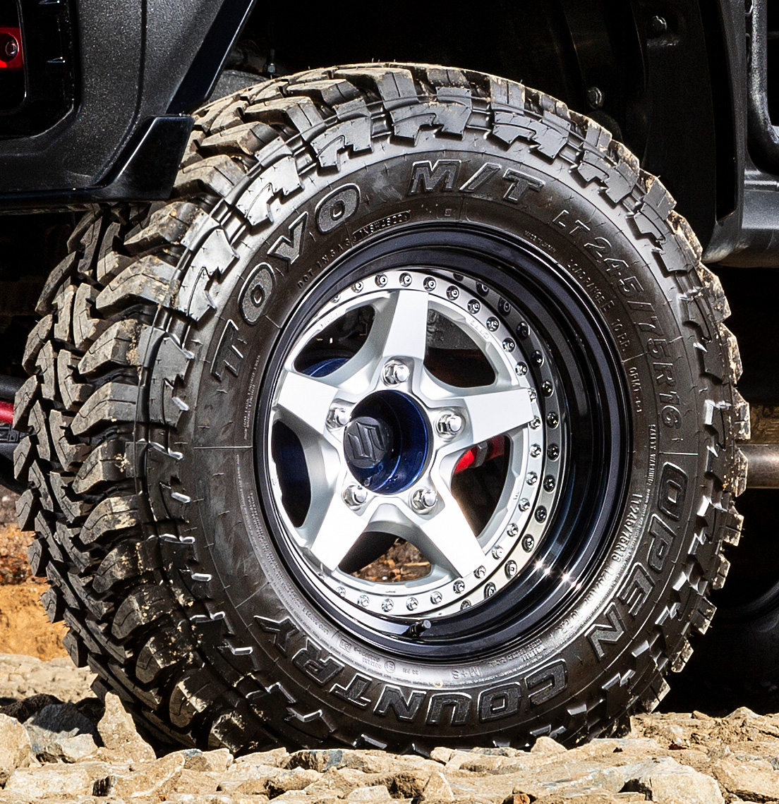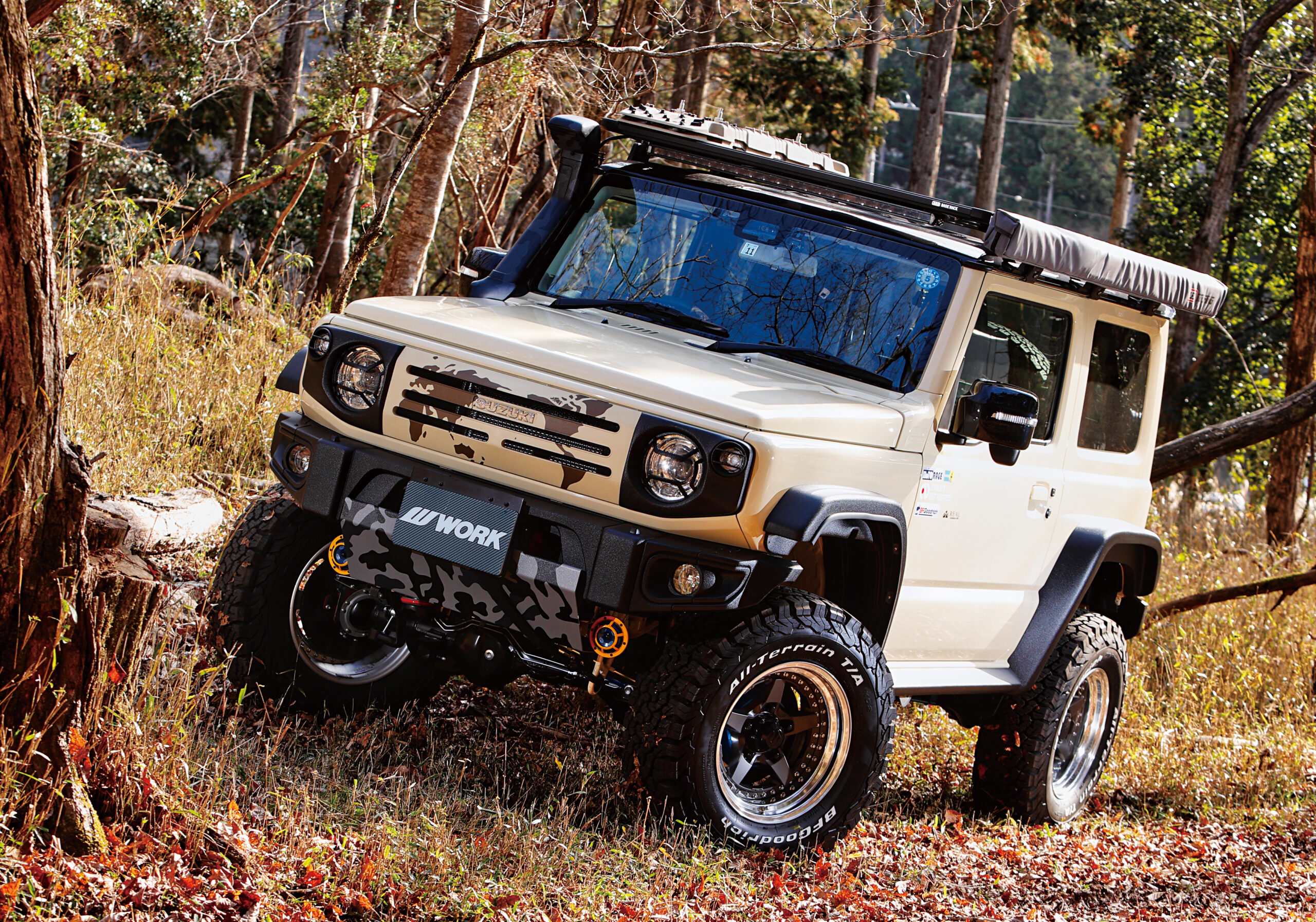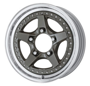 王道の鋳造3ピースホイールとして話題を呼んだ『CRAG GALVATRE』から、ターゲットをジムニー&シエラ専用に絞り込んでさらに進化したモデルが『CRAG GALVATRE2』。これはかつてRV市場を席巻した往年の組み立て式3ピースホイールを現代的解釈で復活させたガルバトレシリーズである。もちろん初代も2代目もメイドインジャパンのWORK品質。ディスクのデザインは初代が丸穴ディッシュであったのに対して、ガルバトレ2はシンプルな5本スポークのデザインに新たにコンケイブ感を加えて現代的にアレンジしてある。
