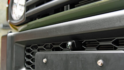 オーバーライダーやハニカムグリルを追加することで、ノーマルバンパーにはない質感とプレミアム感を演出するフロントバンパー。シエラ用が先行して発売中だが、そのデザインをフィードバックしたジムニーJB64用もリリース。ヘッドライトまで覆い尽くすフロントグリルは、ノーマルのやや平面的なフロントマスクに、立体感や重厚感を与える。なお、グリルはシエラと共通パーツでどちらにも装着可能だ。