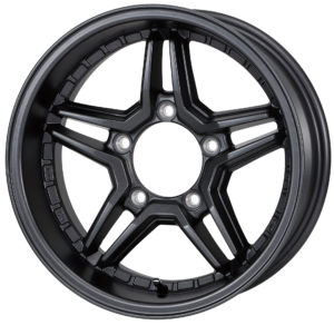 もちろんジムニー用/シエラ用ではサイズを別に設定。マイナスインセットに近いシエラ用のサイズは、16×6.0Jインセット±0とすることでよりディープなリム深度に。そしてスポーティなスポークデザインが、軽ジムニーと比較してより立体的なシルエットとなった。軽量感だけでなく、車格に見合ったたくましい足もとを演出できる。