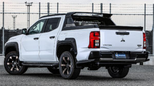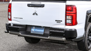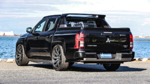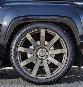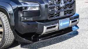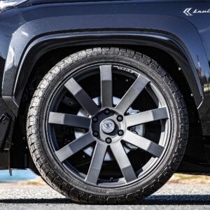またKUHLでは、エアロパーツだけでなくこの世界観にマッチしたオリジナルホイールも展開中。トライトンに装着しているのはVERZ‐RACING FORGED VRF01SVで、圧巻の22インチを装着。その名が示す通り、軽さと強靭さを兼ね備えた鍛造製法なので、決して見た目だけを追求するのでなく、運動性能も考慮されている。