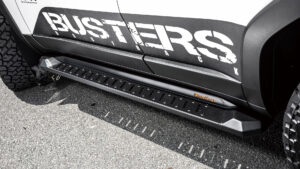 第一弾としてはオートフラッグスのルーフキャリア関連ブランド、バスターズのルーフラックがリリース済み。こちらはスタイリッシュなローマウントフォルムや風切り音を抑えるフェアリングが標準装備される他、ルーフ後方のシャークフィンアンテナとの干渉や純正ムーンルーフの動作にも一切影響を与えない完全専用設計。さらに250についてはフロントバンパーガード、サイドステップ、リアラダーといったオフロードスタイルの演出に欠かせないパーツ類の開発作業が進行中。