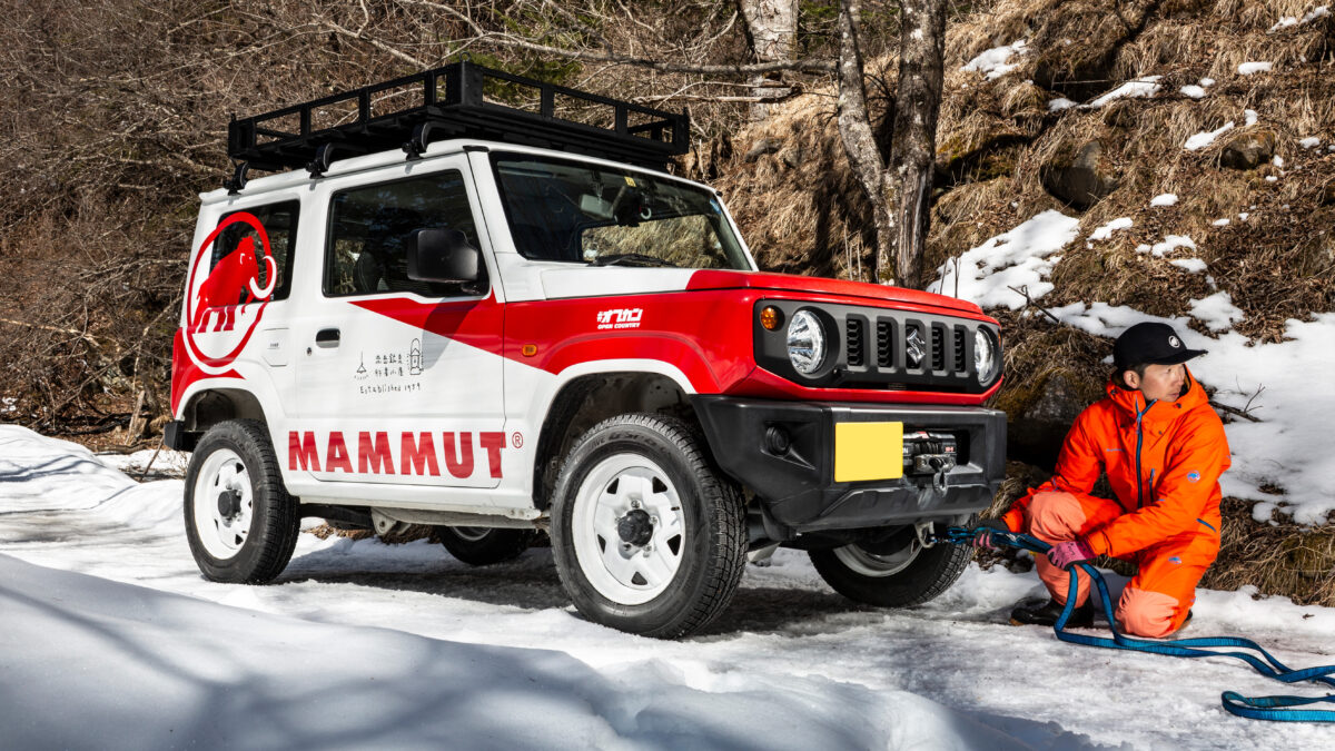一般的な路面だけでなく、刻一刻と変化する山のあらゆる氷雪状況にも対応する安心感の高いスタッドレスタイヤ、オブザーブGSi-6。中でも縦方向のグリップ力が高いと感じるとか。ゆえには走行中はもちろんアイスバーン路面におけるブレーキングも安心なのだ。なおマムートジムニーは、ジムニーJB64純正の175/80R16のタイヤを装着。それは不測の事態があっても入手しやすいサイズだからだ。