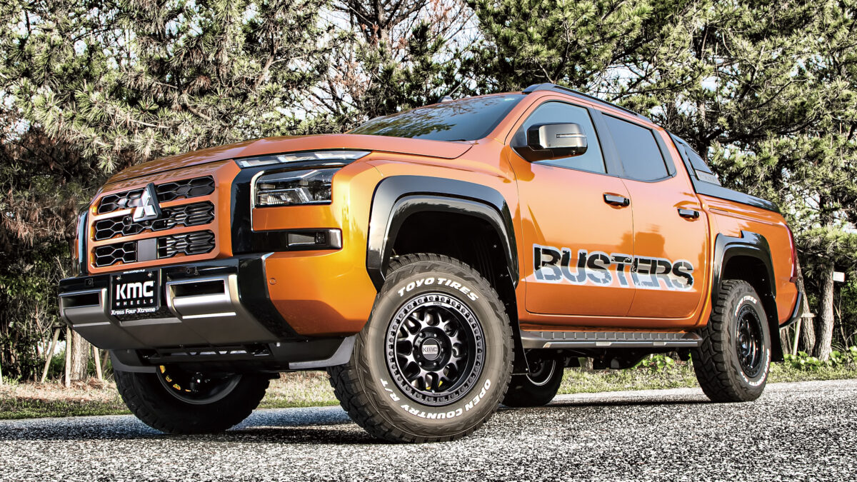 一方でハイラックスにマッチングしたKMCホイールが、ギア感満点のビードリングルックのリムデザインとシャープなショートスポークをインストールする『KMC KM552 IMS』だ。