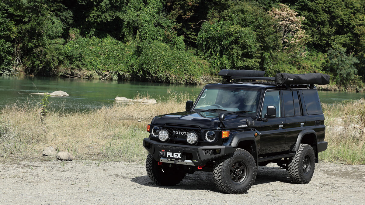 タイヤ&ホイールを除き、ほぼ全身のカスタムをIRONMAN 4×4(アイアンマン)で武装した再再販ランドクルーザー70 FLEX CUSTOM仕様。FLEXはこのオーストラリアに本社を持つサスペンションやキャンプギアのメーカーであるアイアンマンのパーツの正規取り扱いを開始。
