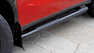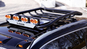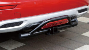 ミドルSUVでも好評のルーフラックは新型を開発中。見た目の逞しさだけでなく、積載能力を向上させることができる。ちなみにルーフラックを搭載するなら、荷物の積載にも役立ち、リアバンパーのガードにもなるトレイルヒッチとの同時装着がオススメ。