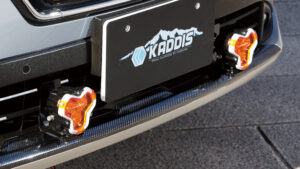 エクストレイル33型と兄弟車でもあるアウトランダーPHEV GN0W型も、1インチのリフトアップがベースのKADDIS AR4スタイルでカスタマイズ。PHEV専用のKADDISアップコイルスプリングに変更して実施。さらに片側20㎜ワイドのKADDIS AR4オーバーフェンダーを前後に追加して、LT265/60R18サイズのBFグッドリッチATタイヤをセット。これで基本スタイルだが、さらに乗降性と積載性に配慮してサイドステップや、ミドルSUVに最適なルーフレールラックのプロトタイプを搭載。さらにリアバンパーには荷室やルーフに容易にアクセスできるトレイルヒッチを装備している。