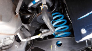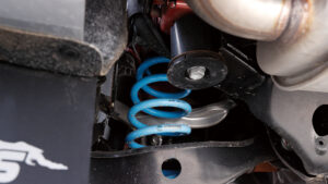 アップコイルに交換して約35㎜リフトアップしたことでスタイルアップとオフロードでの安心感が高まる。またノーマルより大きなタイヤを装着することが可能となり、カスタムの幅が広がる。そう、デモカーはLT265/60R18サイズのタイヤを履くことが可能となった。