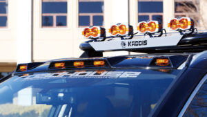 エクストレイルの特長的なグリルの上側にはホワイトの4連LEDマーカーを追加。またフロントウインドーの上には、アンバーの5連ルーフマーカーランプを追加してSUVらしい存在感をアピール。単なるドレスアップではなく霧やホワイトアウト時の視認性が高まるなど、安全性も考慮。