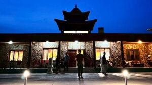 ブラックマウンテンの後にゴビ砂漠を進んで到着したのが、フレイミング・クリフ(バヤンザグ)。夕日に照らされると、崖全体が燃えるように赤く染まるまさに「炎の大地」。この場所は世界的にも有名な恐竜の化石発掘地で、なんと“世界で初めて恐竜の卵が見つかった場所”でもあるとか。