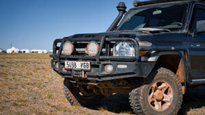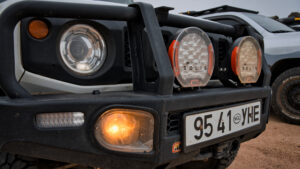 旅の途中に羊、ヤギ、馬、ラクダに出会ったが、衝突したら走行不能になるダメージを受ける可能性がある。特に馬は先頭次第で群れ全体が動くスピードも速くなり危険。ラクダもかなりの巨漢。もちろん動物との衝突は回避するべきだが、もしもの時は「被害を最小限に出来る」という安心感がARBのバンパーには確かにある。またライト類や無線のアンテナ、ウインチを搭載するベースとしてもメリット大だ。
