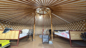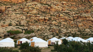 さらに移動した先で訪れたのは、遊牧民が住まいとしている「ゲル」。モンゴルと聞いてゲルをイメージする方も多いでしょう。外見はシンプルながら中は鮮やかな装飾が施され、伝統と生活の知恵が詰まった空間です。