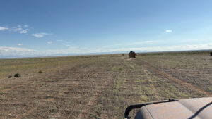 ほぼ360度地平線。夏季ゆえ、背の低い草木が一面に広がり何もない。そのため全域に渡って比較的ハイスピードでの移動が多かった。乾燥している路面では表面の砂で気を許すとアンダーステアが出るが、決めたコースをトレースするにはそれなりに集中力も必要だった。また前走車の砂埃が視界を遮るため、直前で障害物をよける場面も。