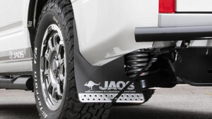 オフロードカスタマイズといえばリフトアップは欠かせない。もちろんジャオスの機能品ブランドであるBATTLEZにはデリカミニ用サスペンションがラインナップされている。さらに泥はねからボディを守るマッドガード、そして堅牢なスキッドバーを併せて装備すれば、機能とスタイリングを両立したリフトアップ×オフローダーの誕生だ。