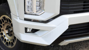 ナンバープレート下側のロアグリルも別体のパーツ構成で、このデザインもアッパーグリルとの共通化など、細部まで徹底的にこだわってデザインされている。純正バンパーをしのぐほどの完成度はさすがだ。
